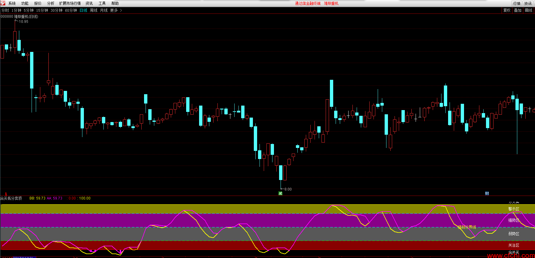 DRAWTEXT(CURRBARSCOUNT=10,65,'强势区'),COLORFFFFFF;