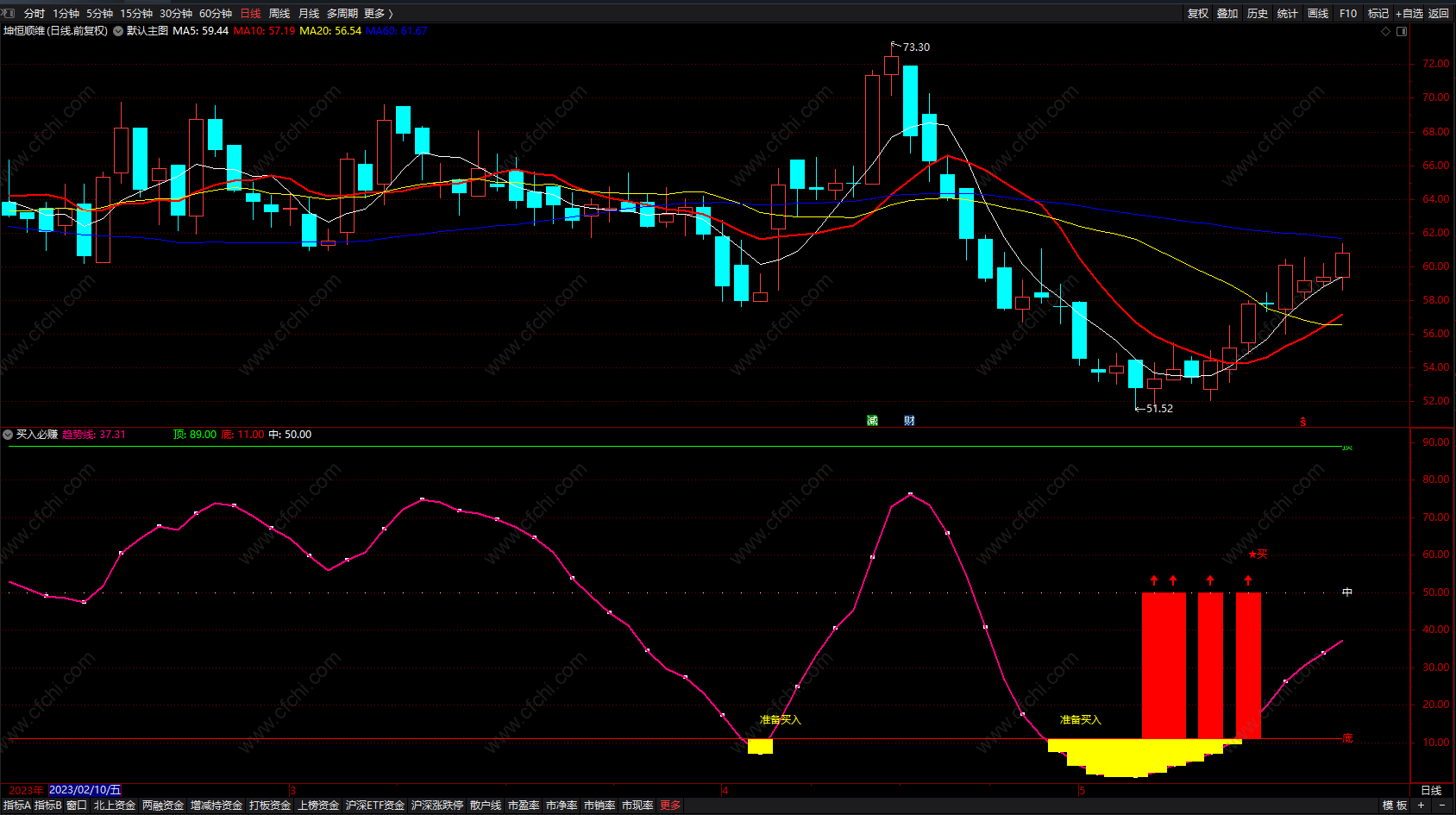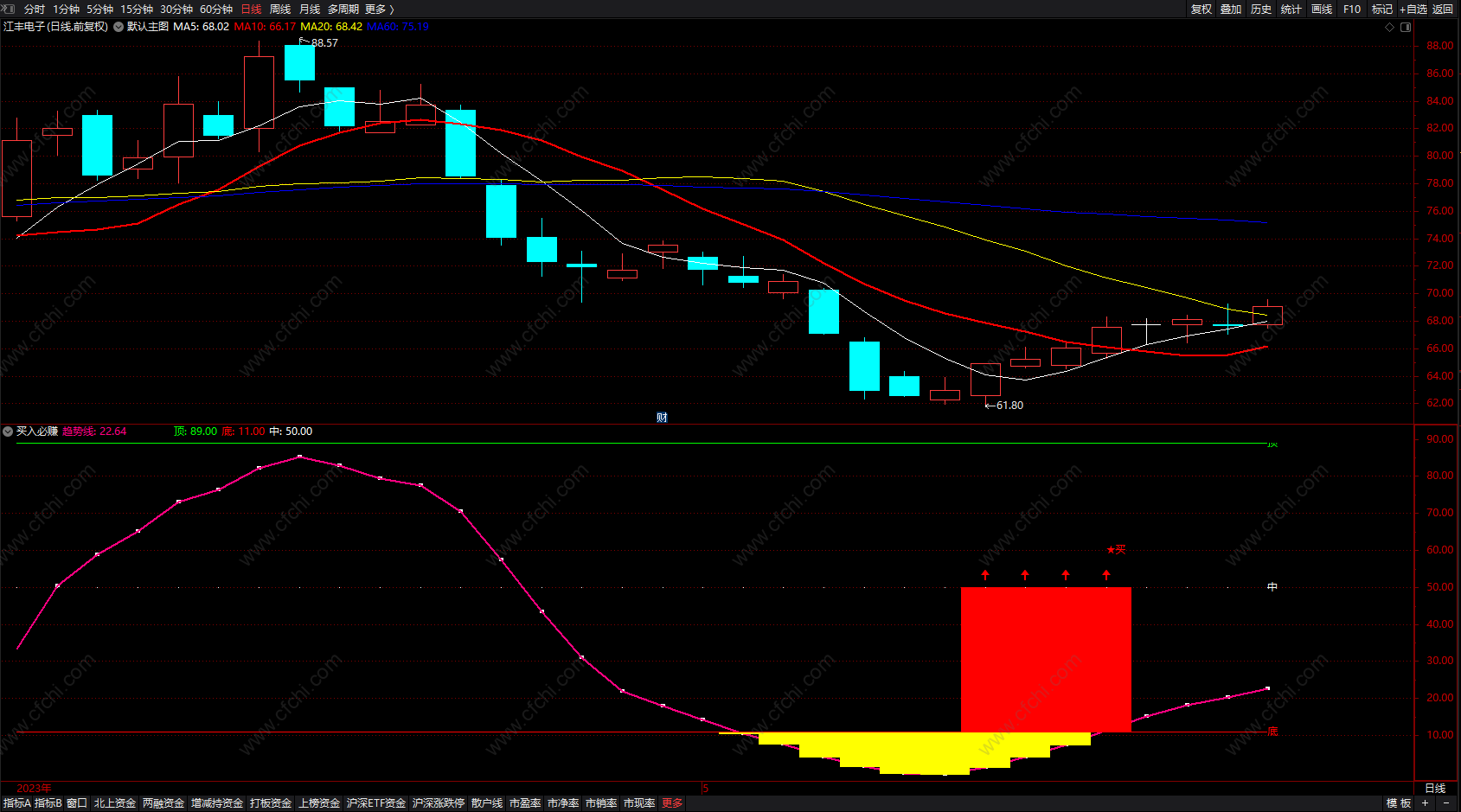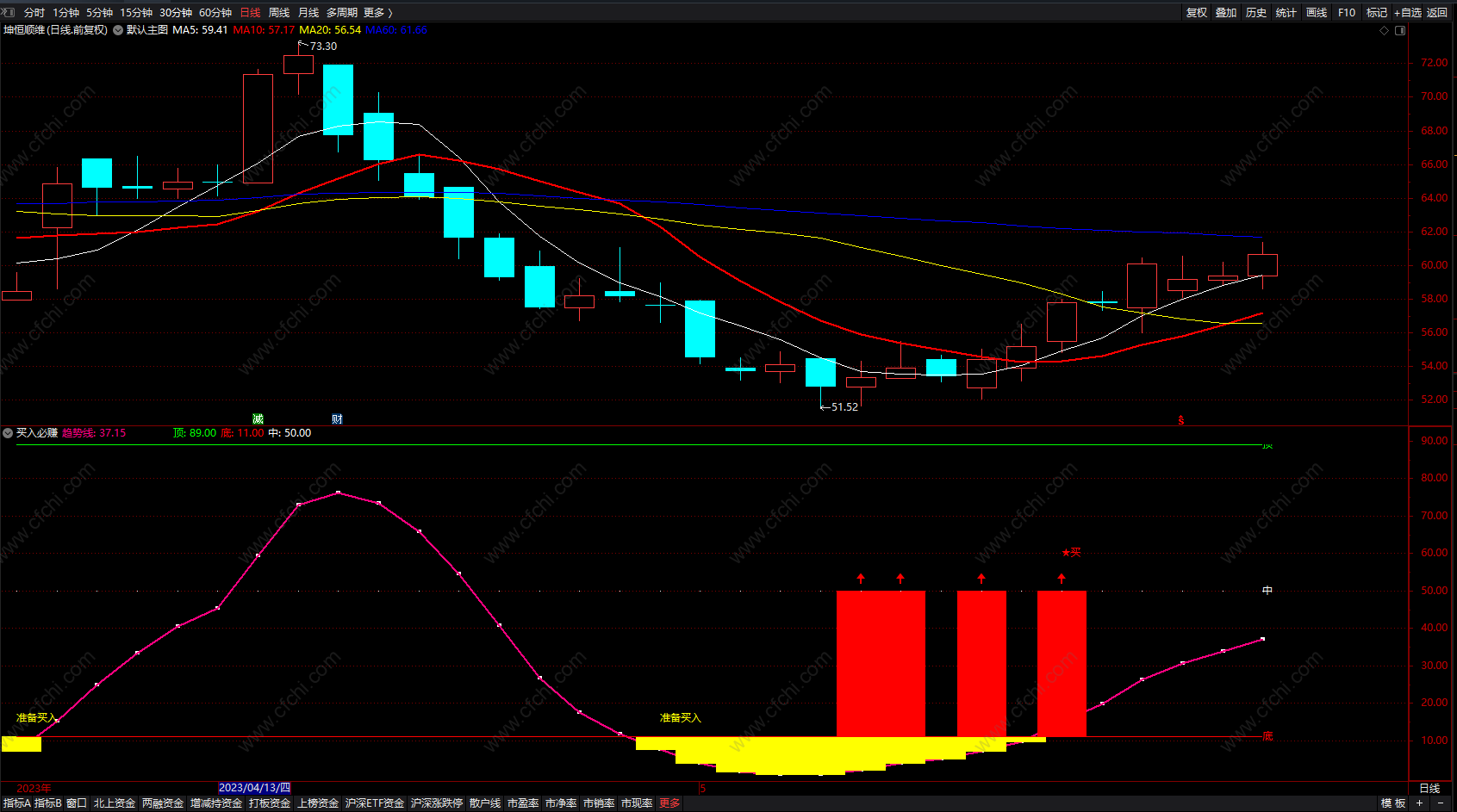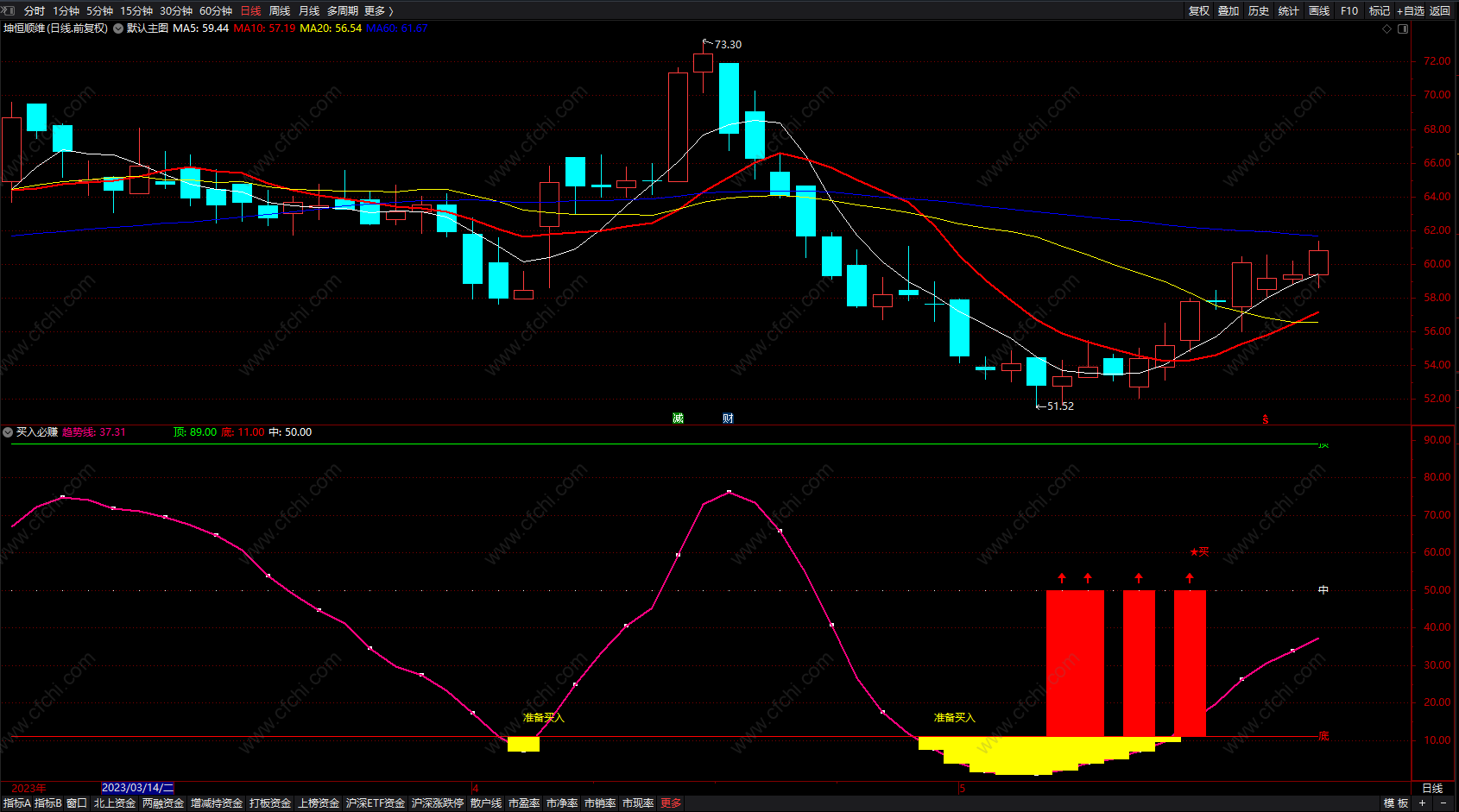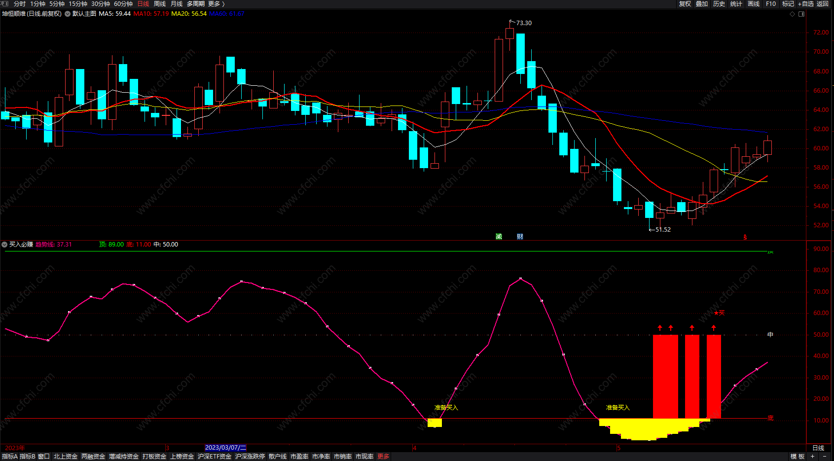 3、同样当个股出现准备买入信号时,如果行情不好时也是随时准介入,如行情好的话,这是我们介入时机。
