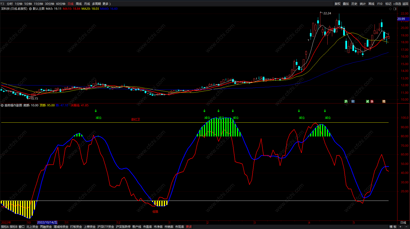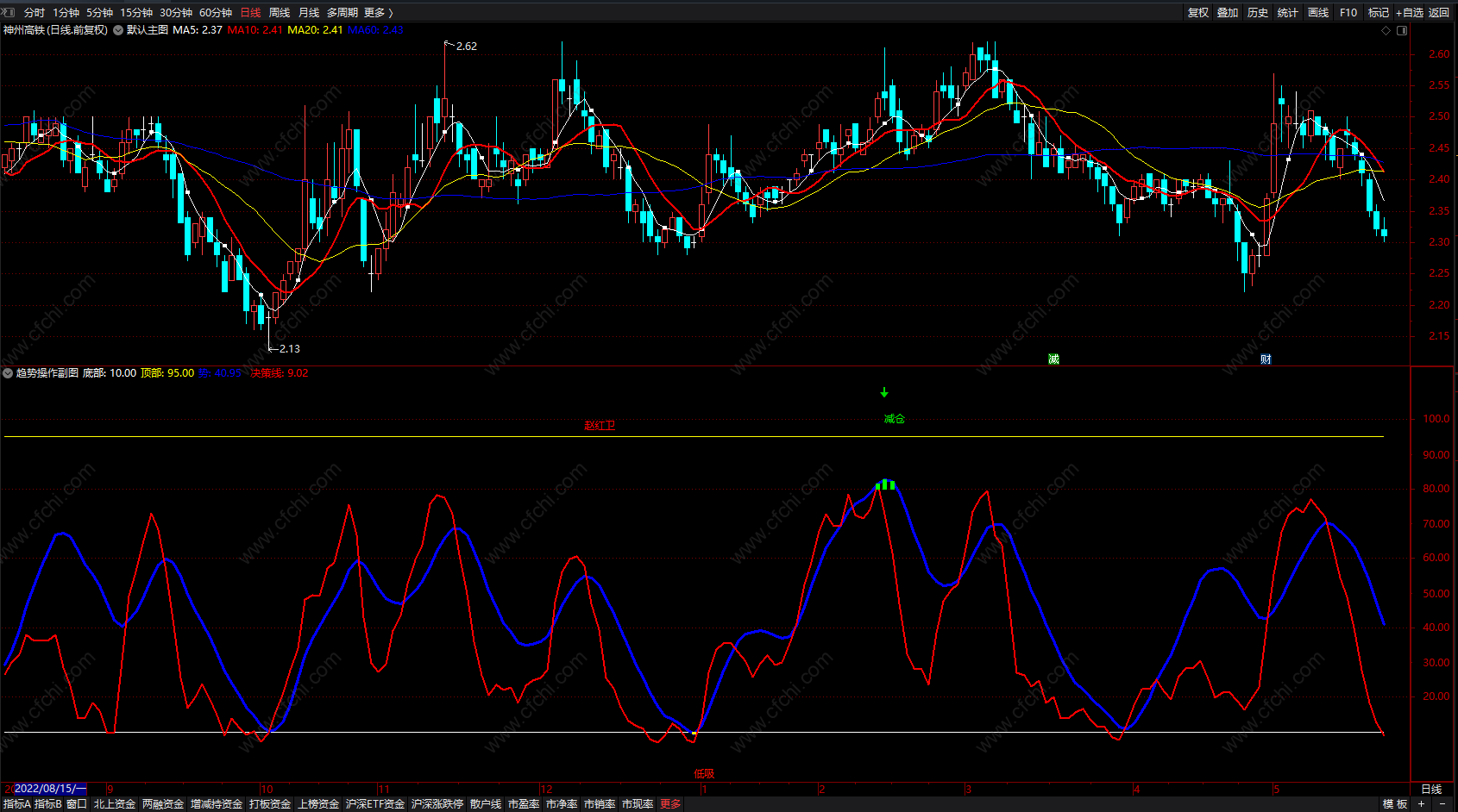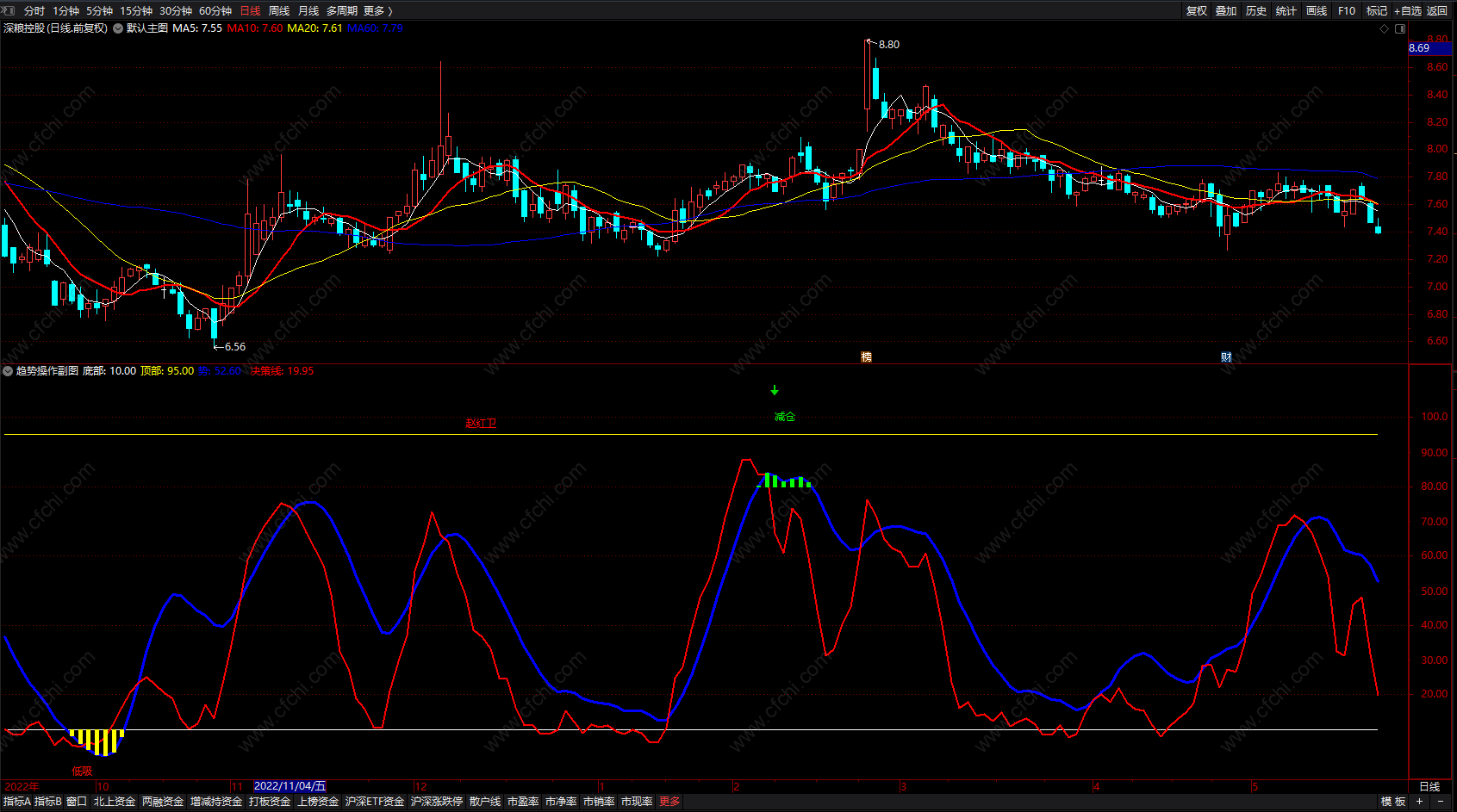 进入高位风险区域后,结合趋势抄底指标,确定卖点。