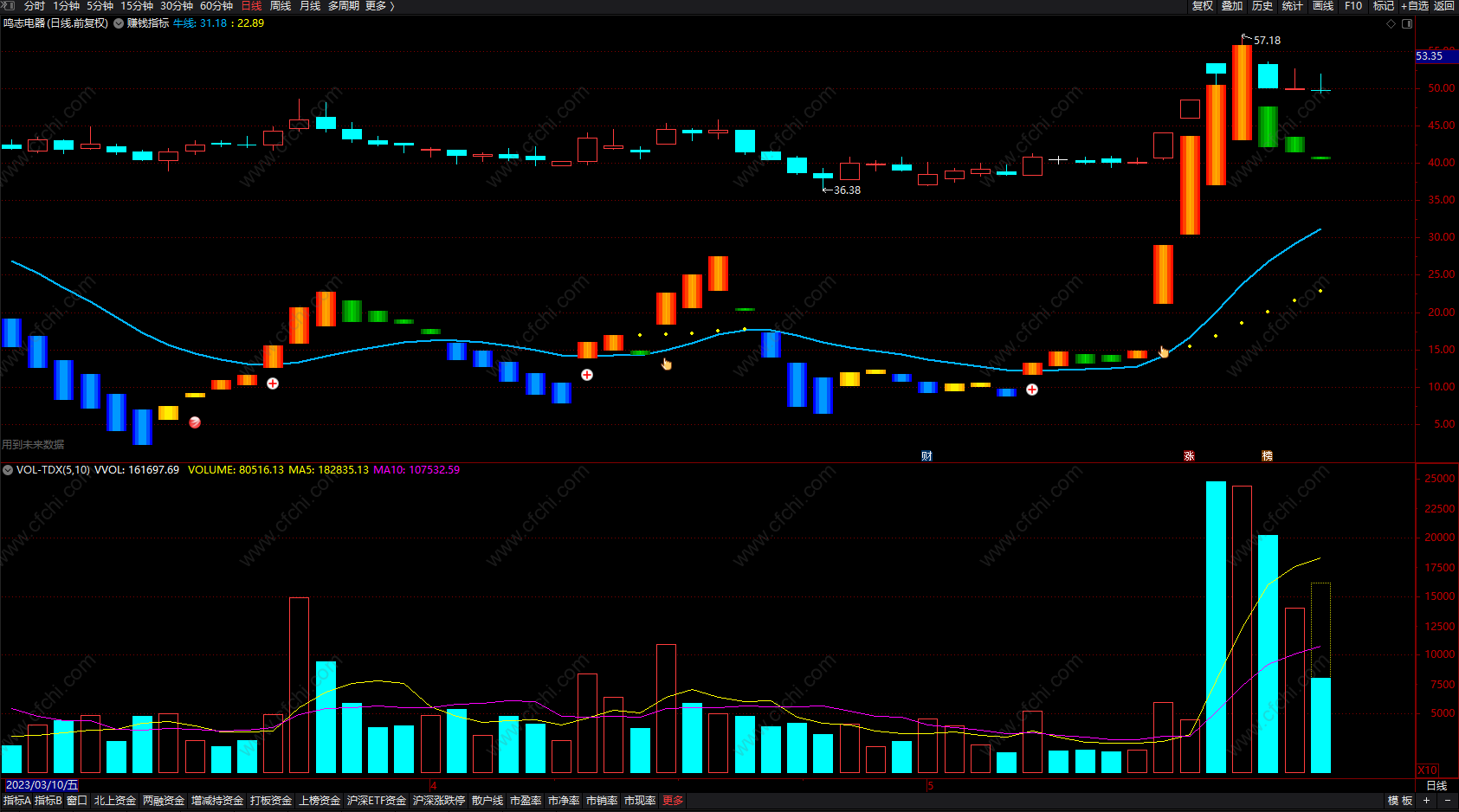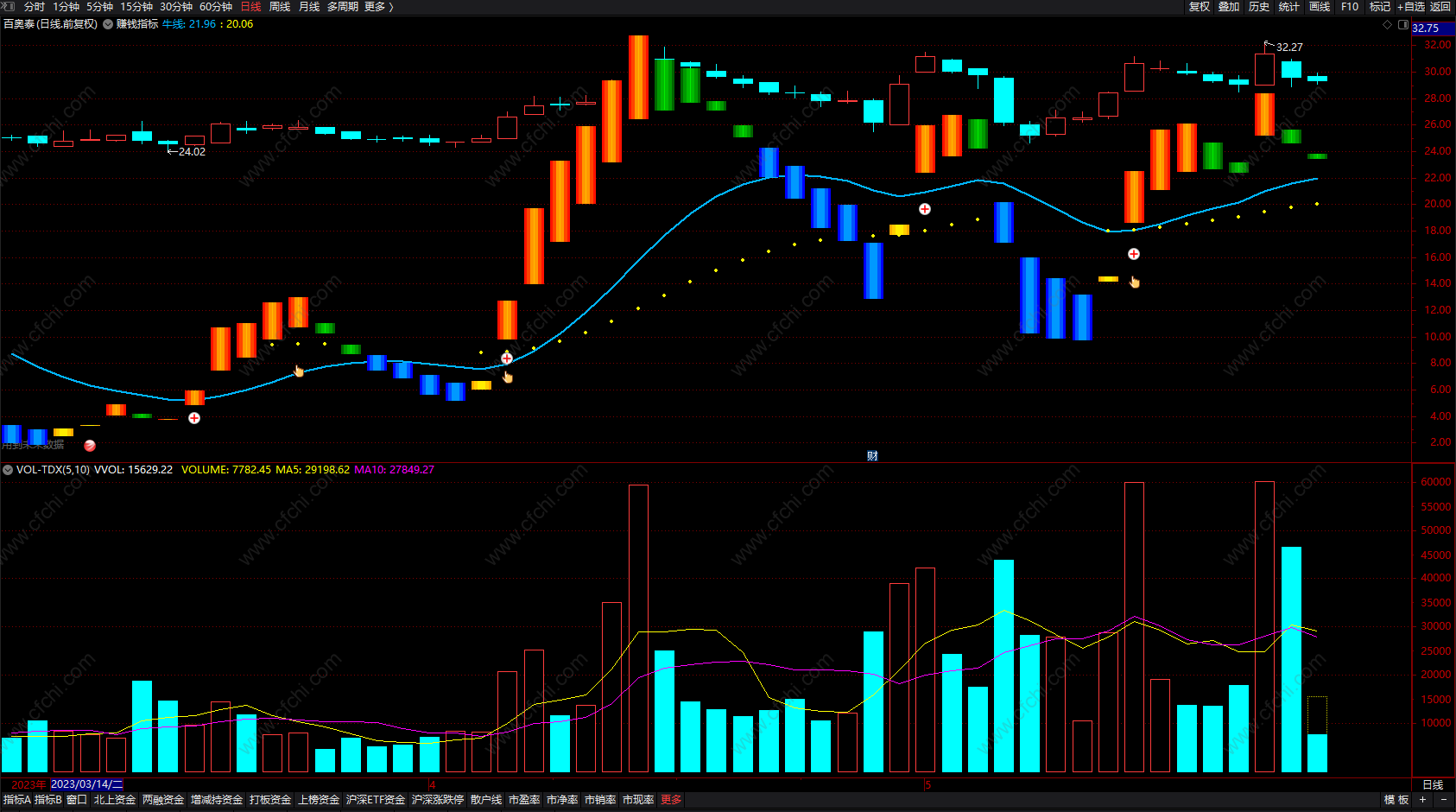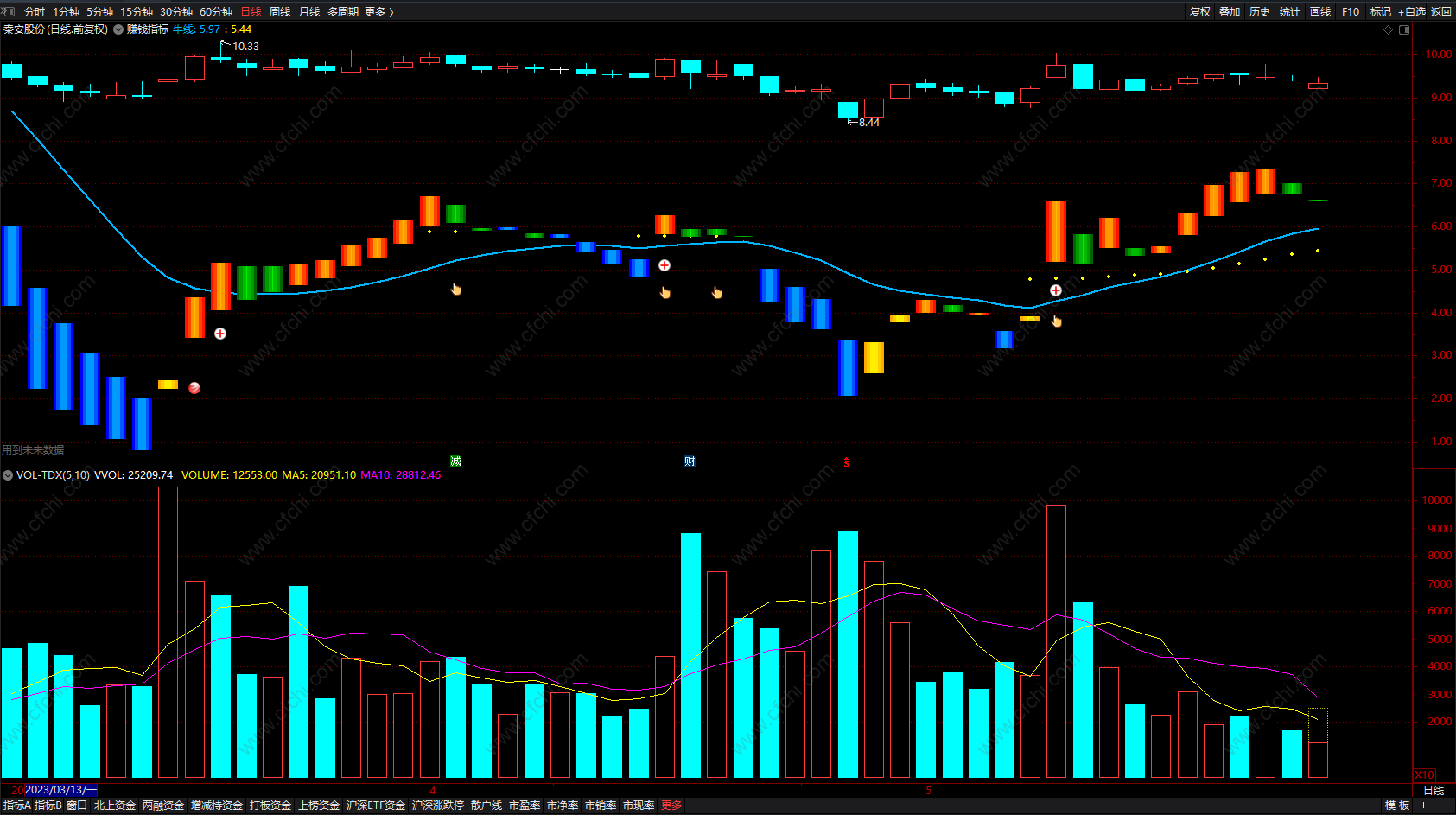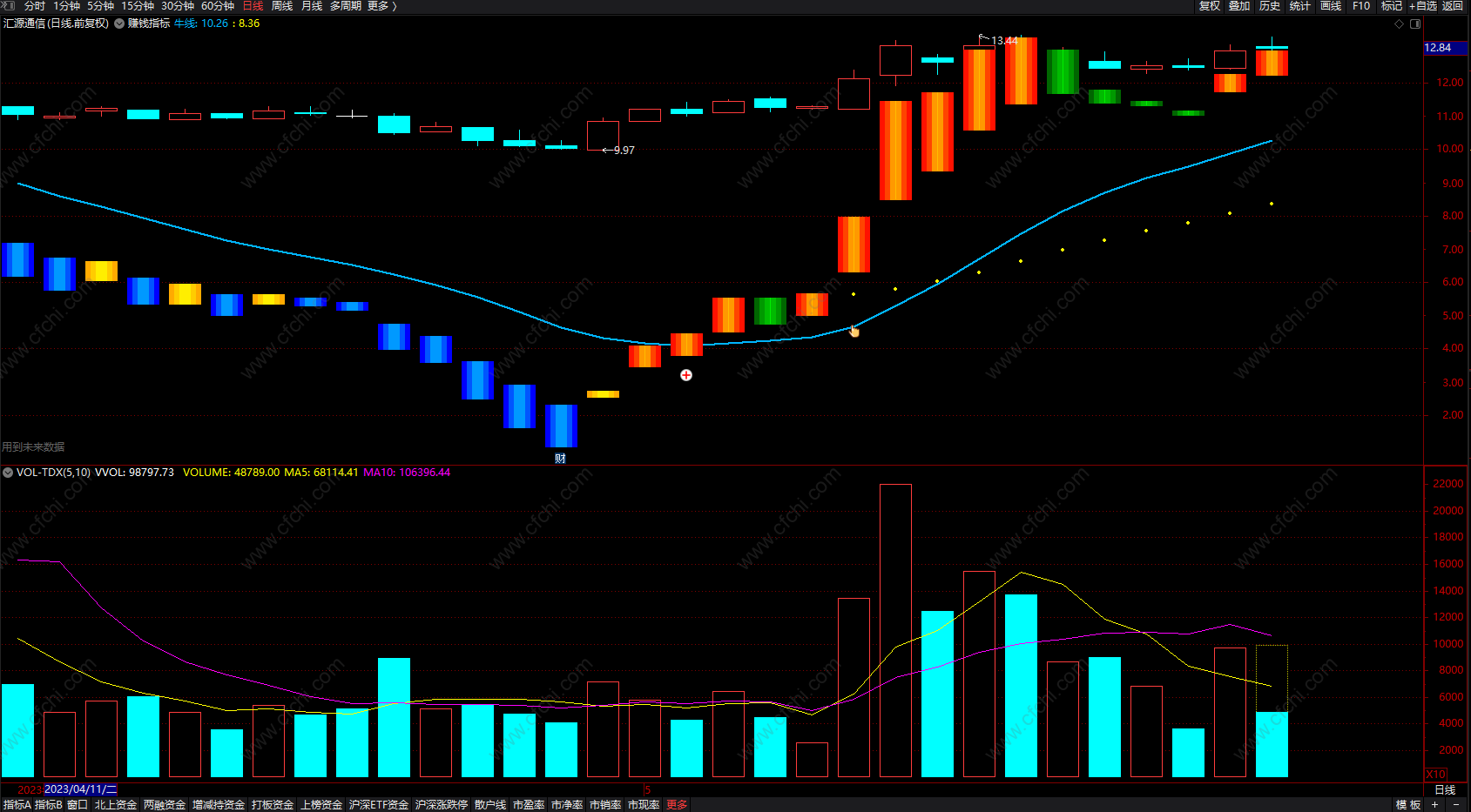 (短线炒股的最赚钱公式 通达信波段低点买入卖出指标 副图 源码 )