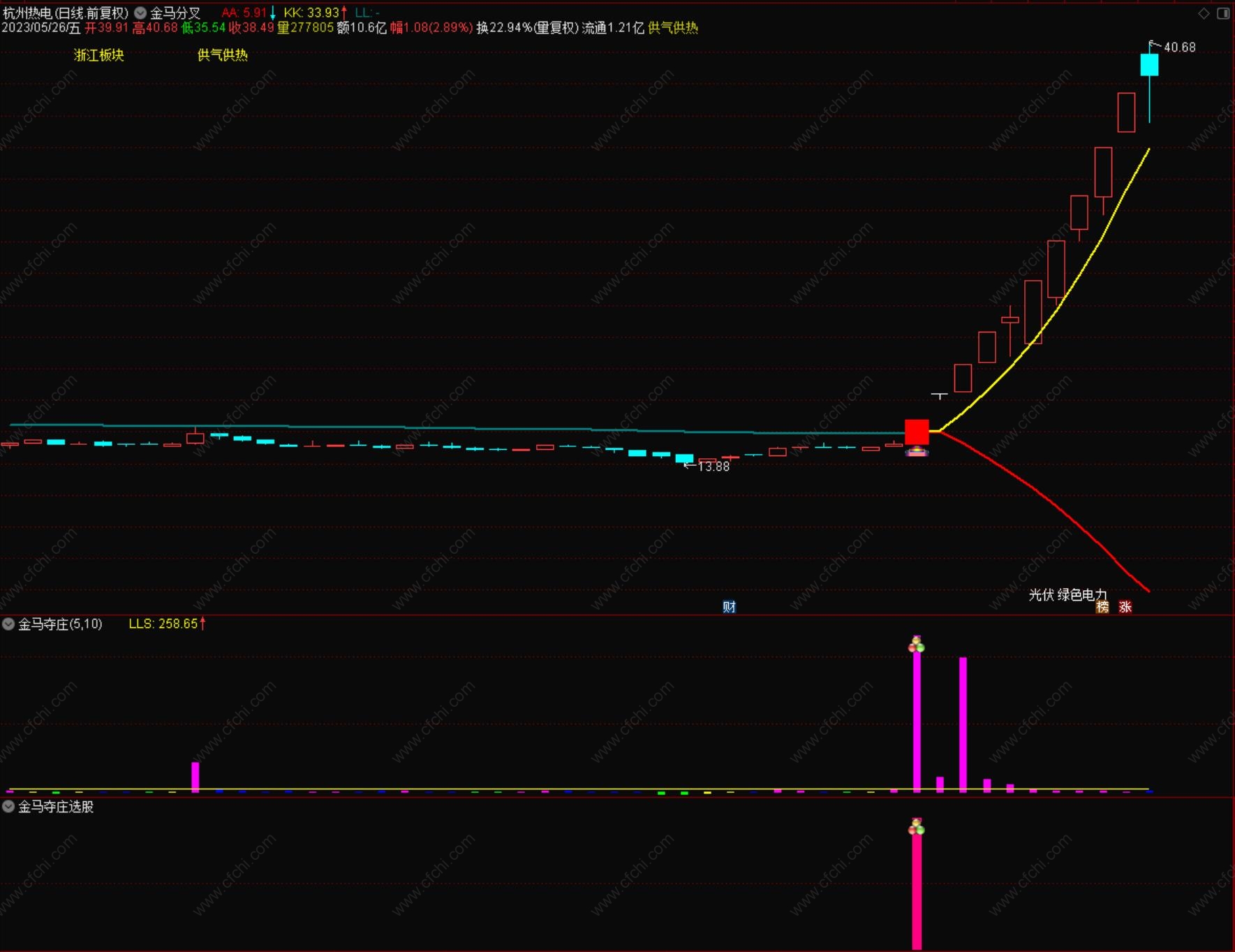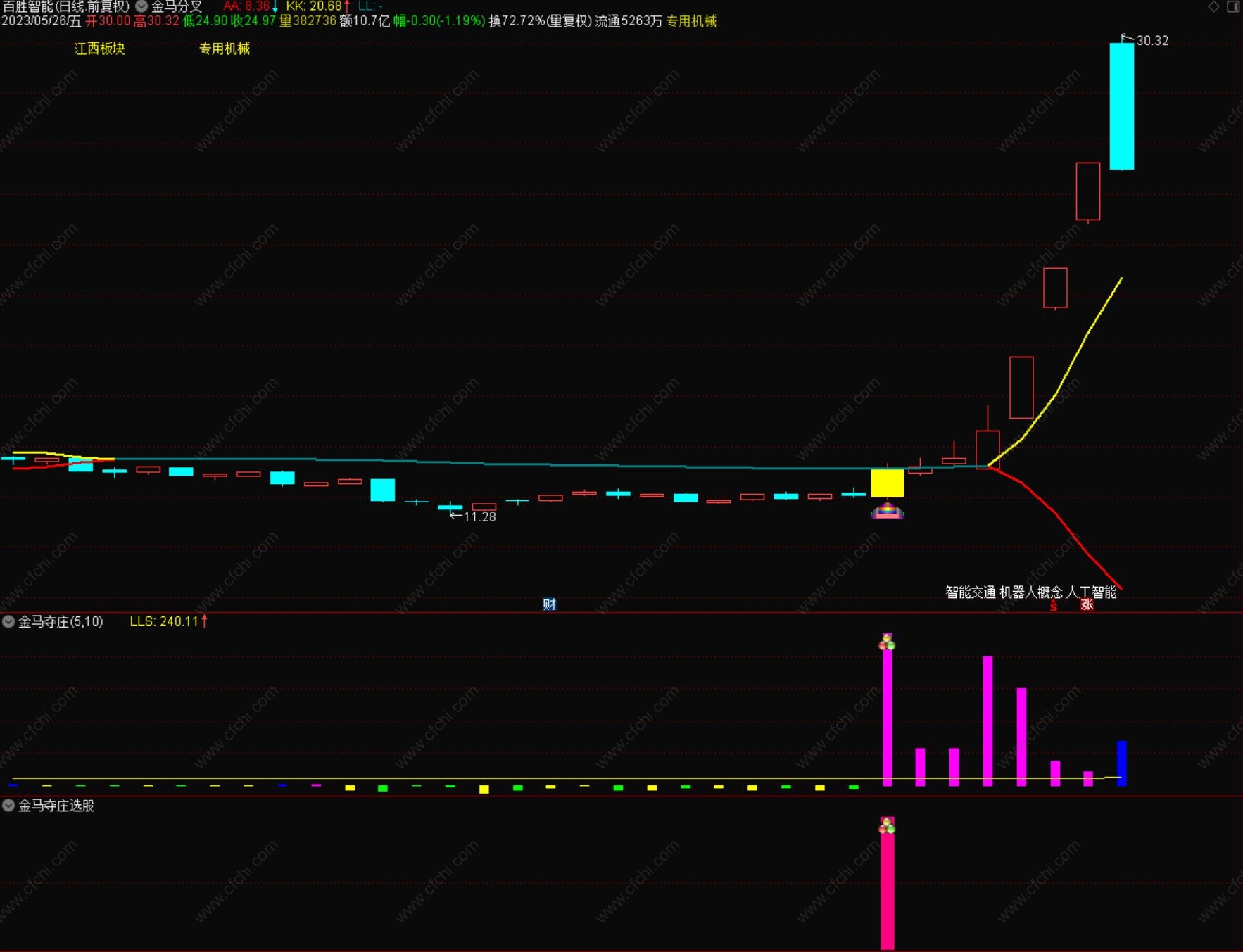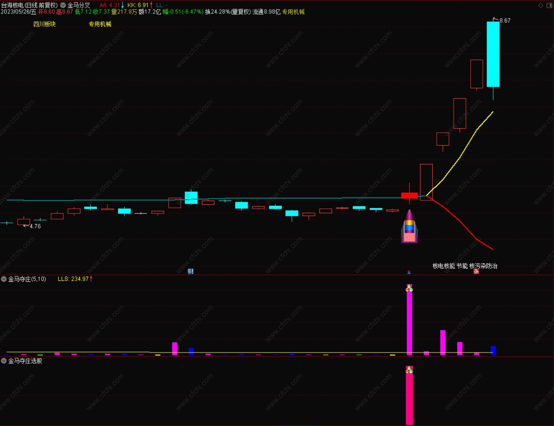 本帖指标包含金马夺庄副图,并把三色球信号做了副图和选股,与其他金马系列指标配合使用,共振选股更劲爆。