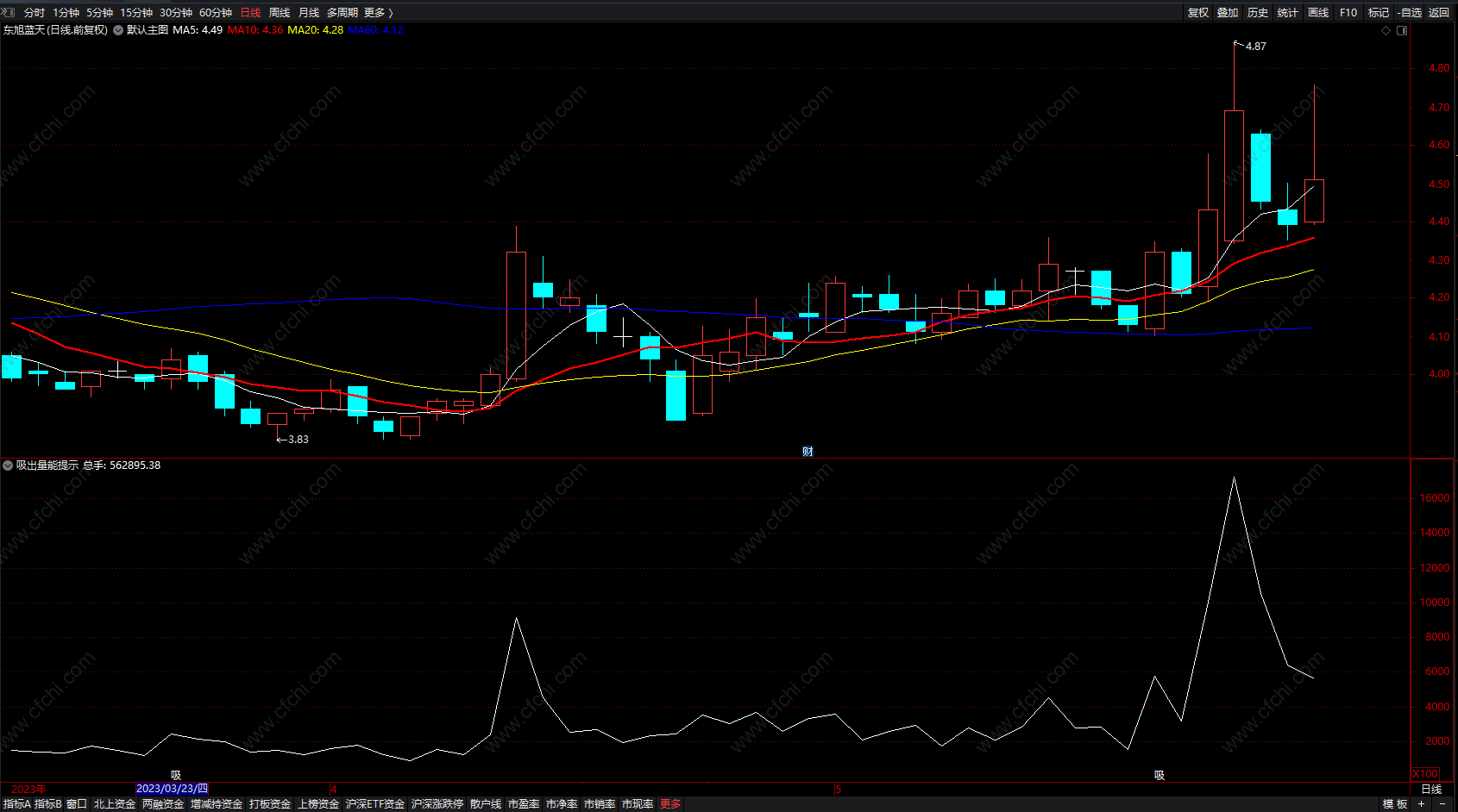 DRAWTEXT (VOL>MA(VOL,5)*2 AND V>V34*3 AND C<REF(C,1)*1.05,V,'天'),colorwhite;