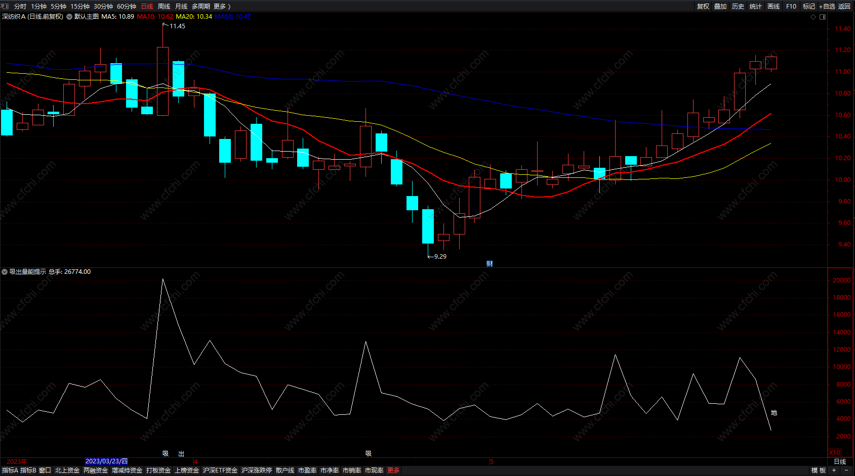 DRAWTEXT (CROSS(C,C6) AND V>v5*1.2 AND V>v12*1.2 AND zz>2 AND C>H*0.975,0,'吸'),colorwhite;