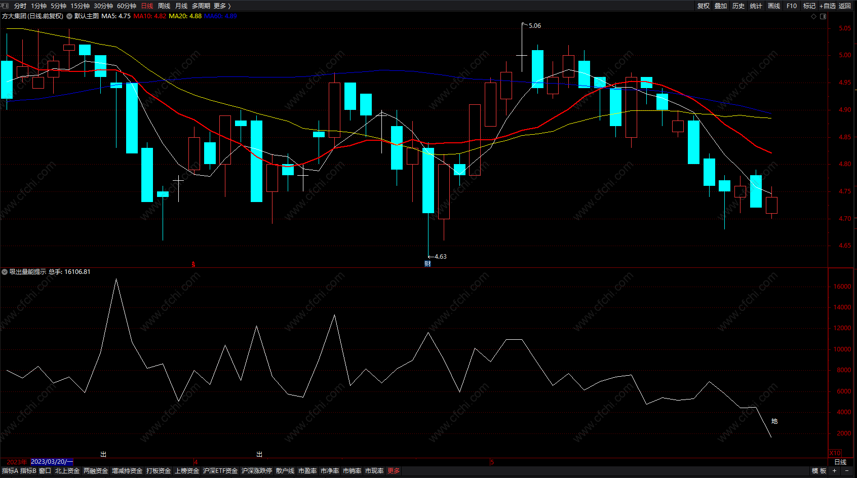 (趋势线吸货出货量能提示 通达信指标公式 副图 无未来 源码 )