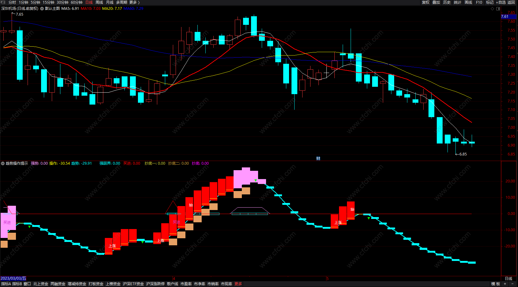 (趋势操作提示 通达信波段买卖点附图指标公式 副图 无未来 源码 )