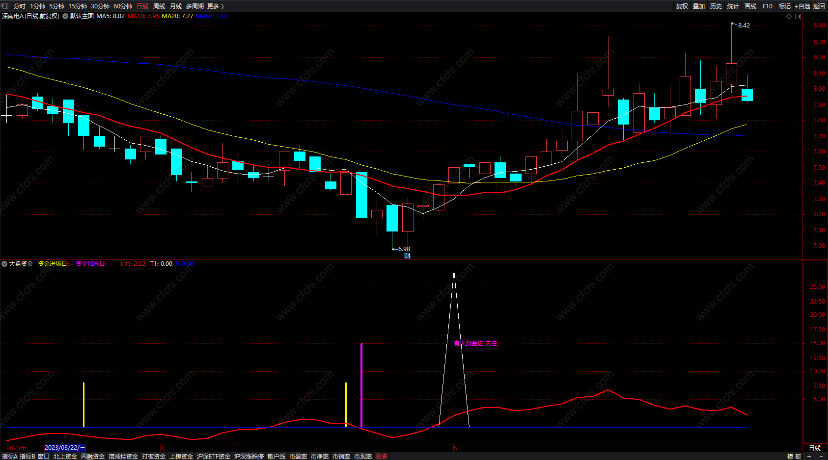 提示大笔出货时是卖出信号,提示资金进场时是买入信号