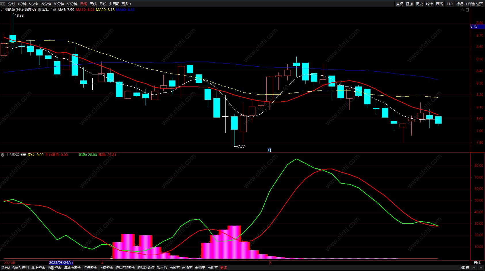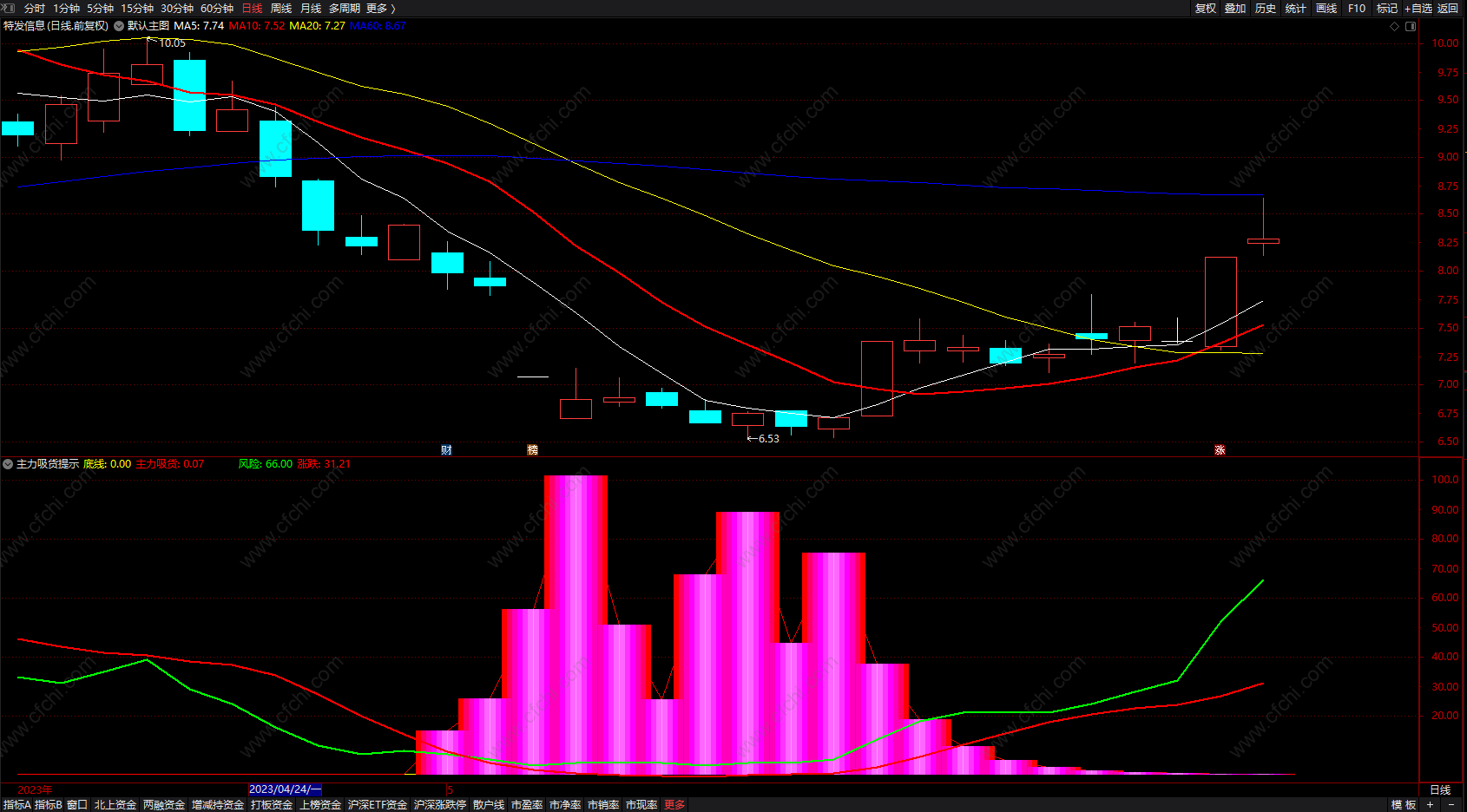 (通达信主力真吸货提示指标 稳赚不赔抄底必备指标 副图 无未来 源码 )