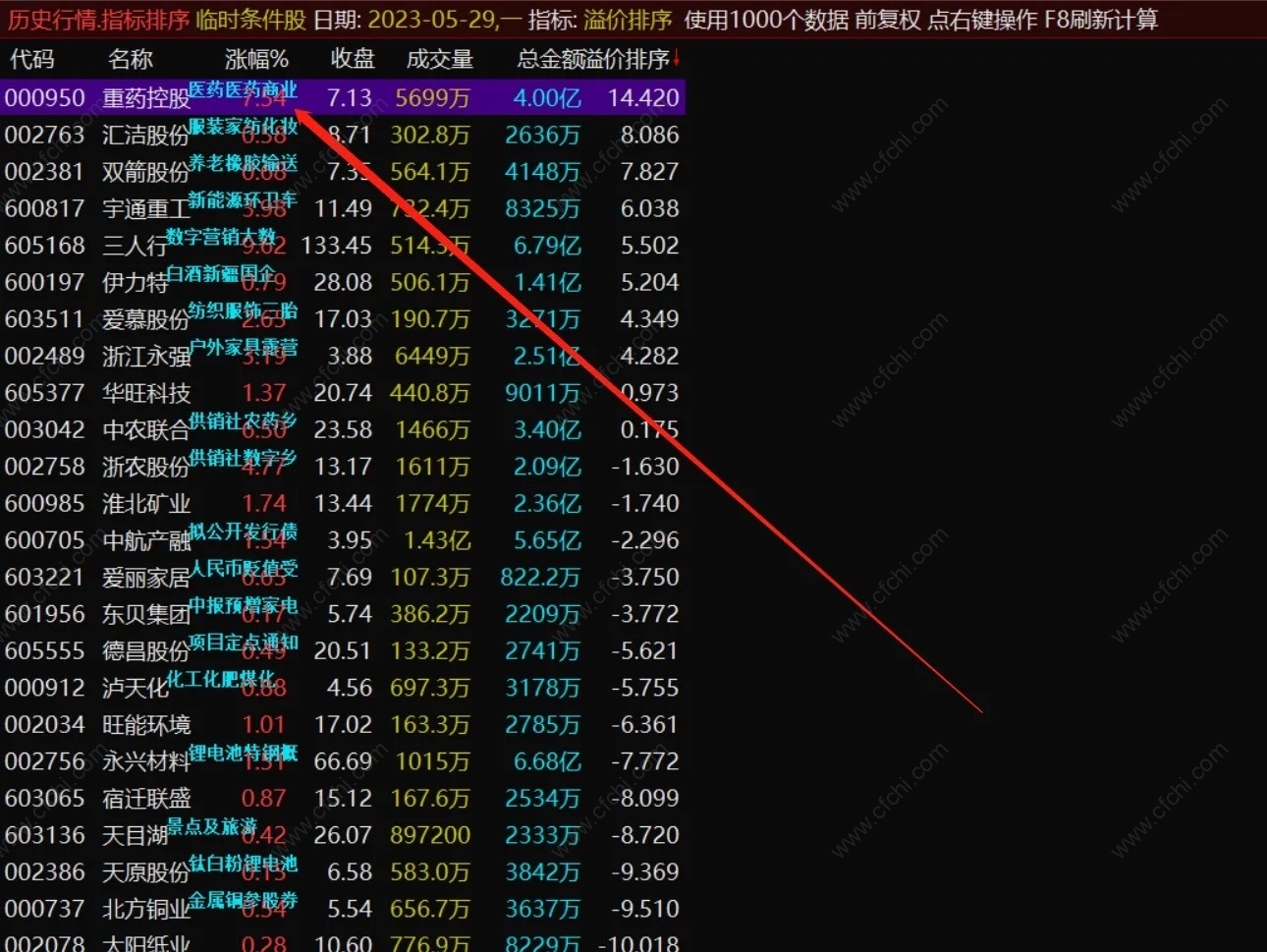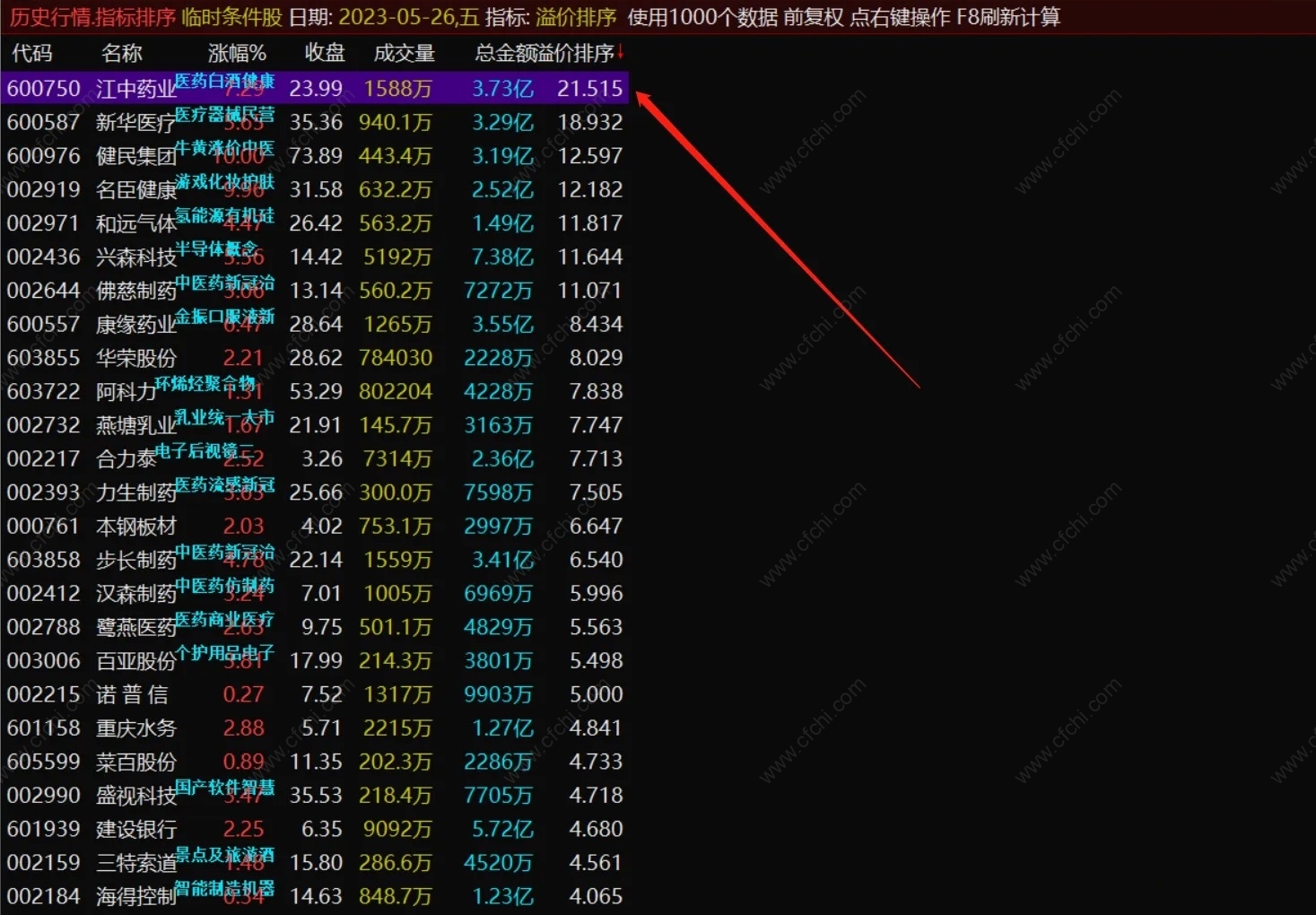 (【超牛溢价率排序】通达信超牛溢价率排序副图选股指标,早盘排序、尾盘选股!)