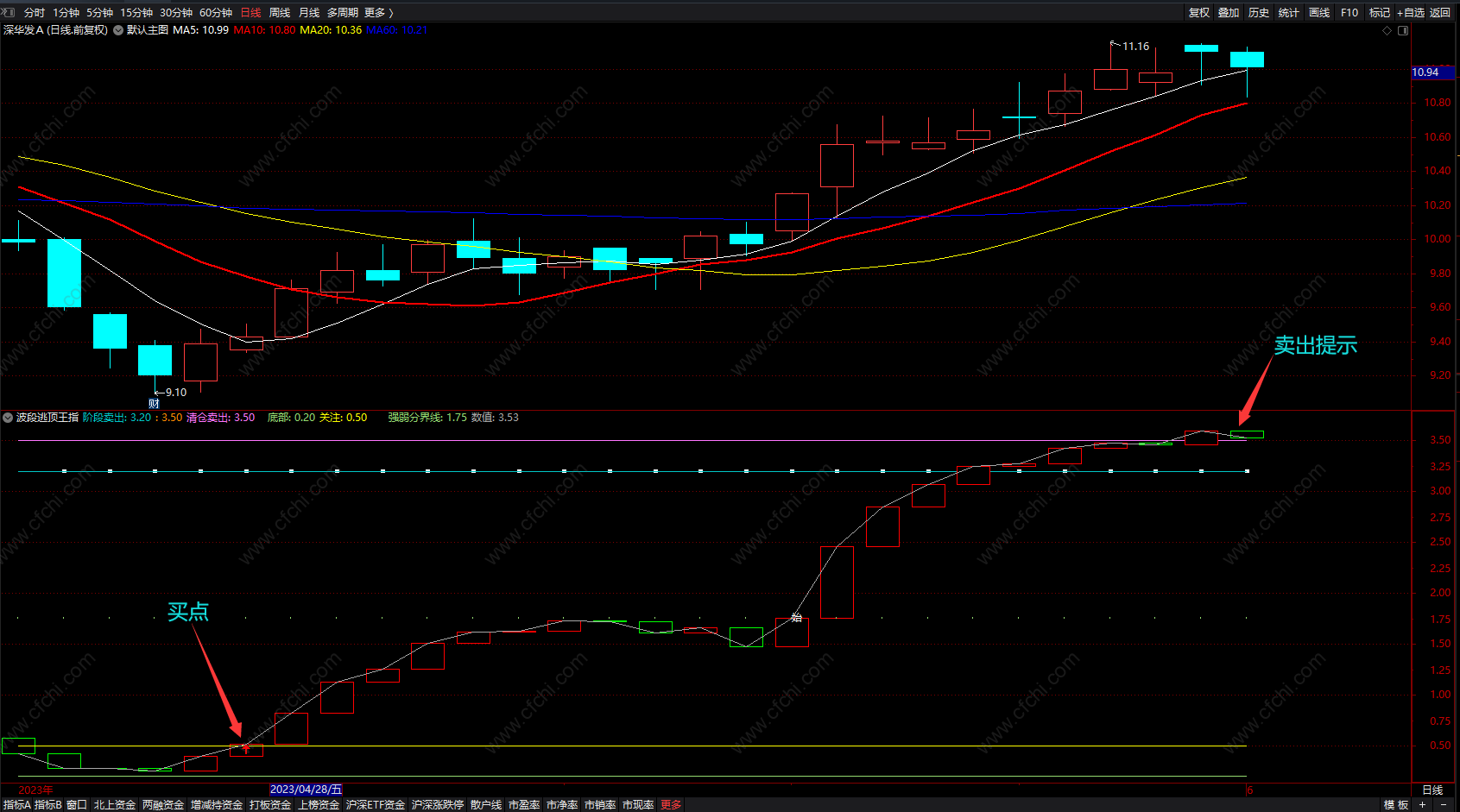 买点:红色箭头提示上涨 红色波段持股