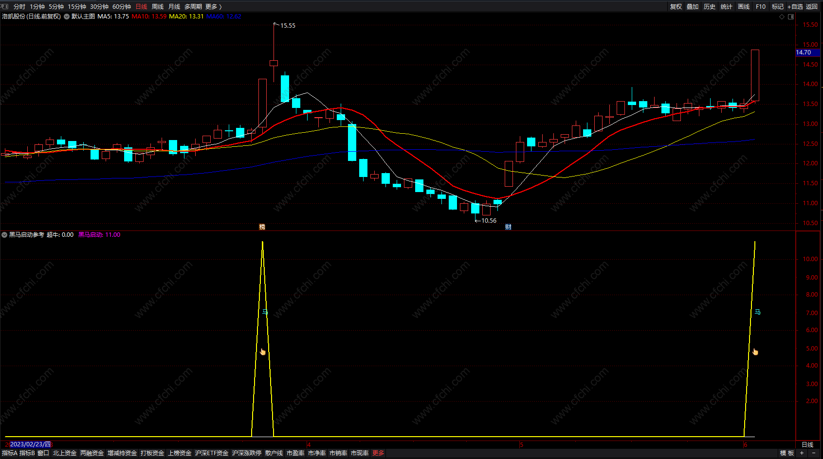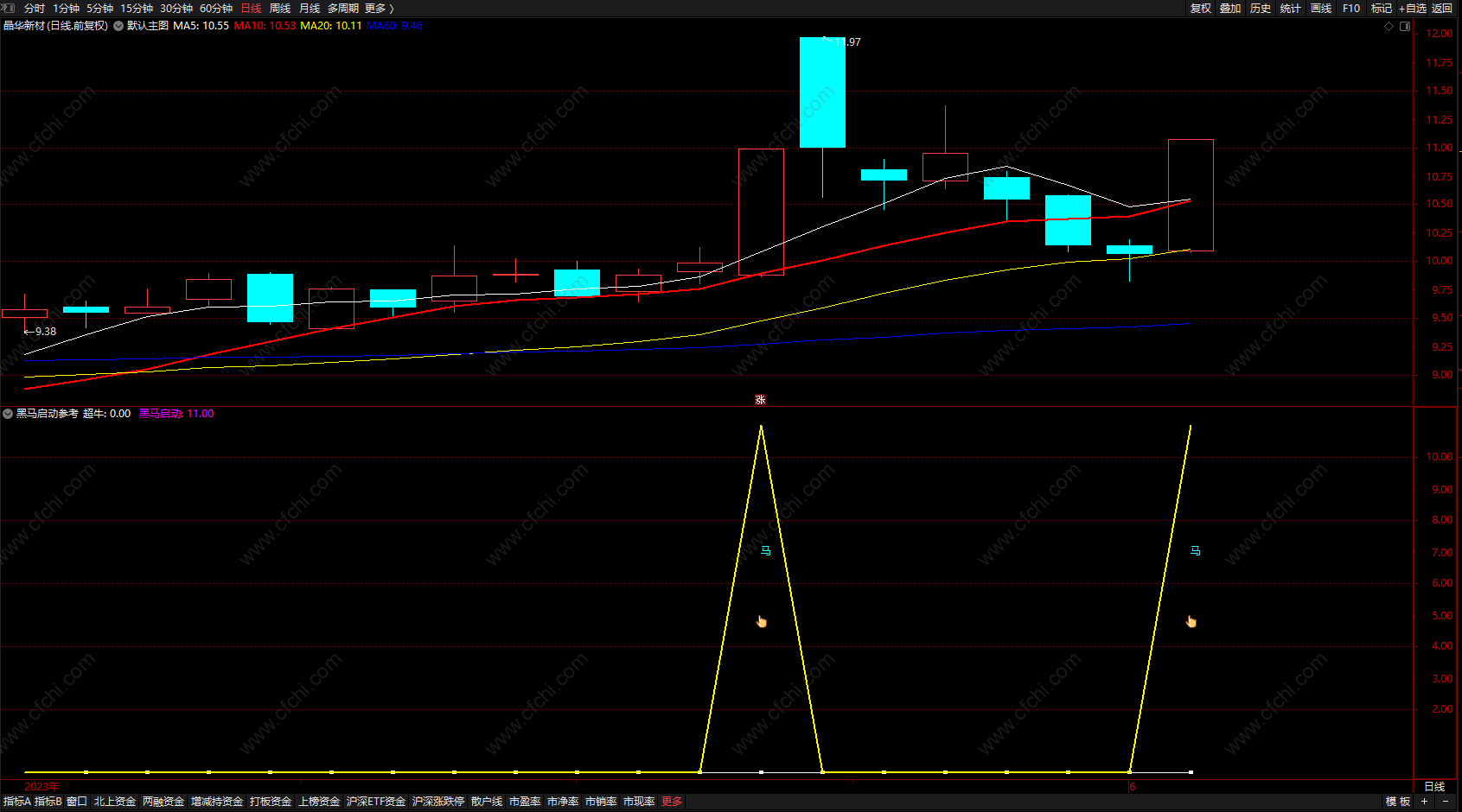 通达信跟庄黑马预警选股公式 短线买入追涨时机指标 副图 源码
