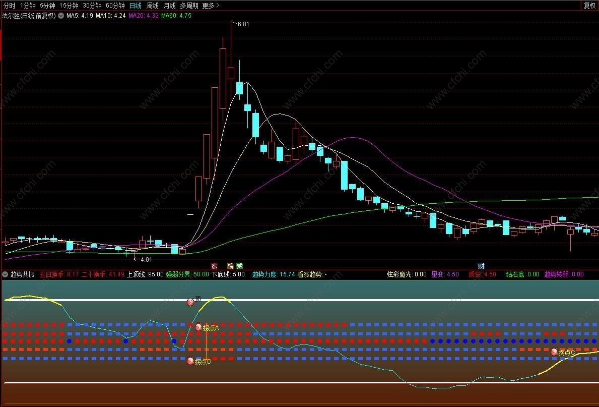 财富池指标公式网(www.cfchi.com)提醒您:指标公式是通过数学逻辑角度编写而来,仅是股票分析环节中的一个辅助工具,对股票选股效率和分析便捷上起到一定的作用,股市是具有不确定性和不可预测性的,请正常对待和使用指标公式!