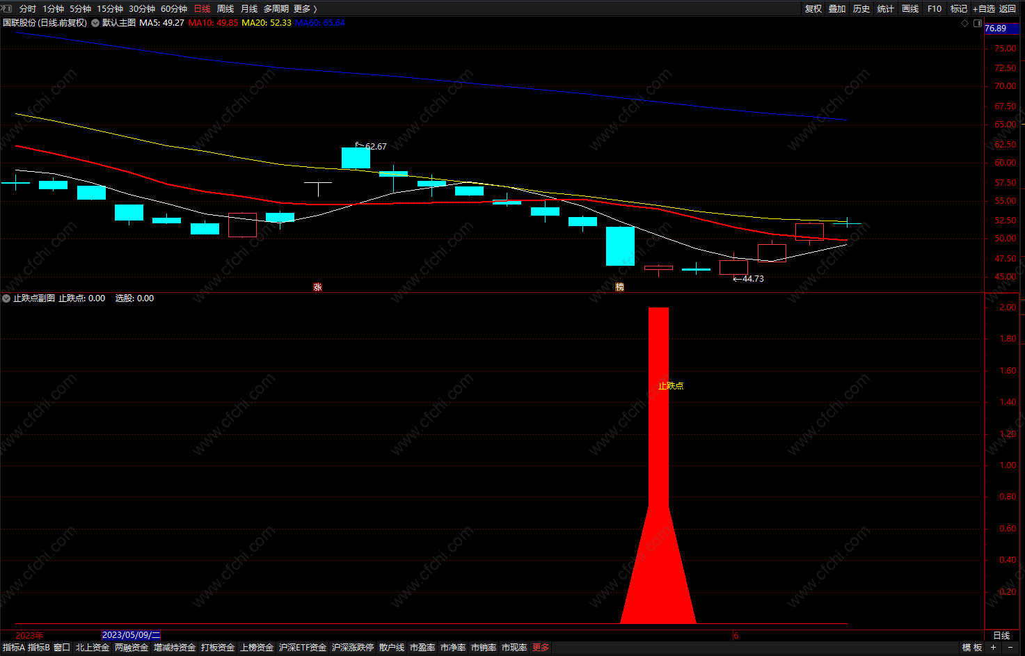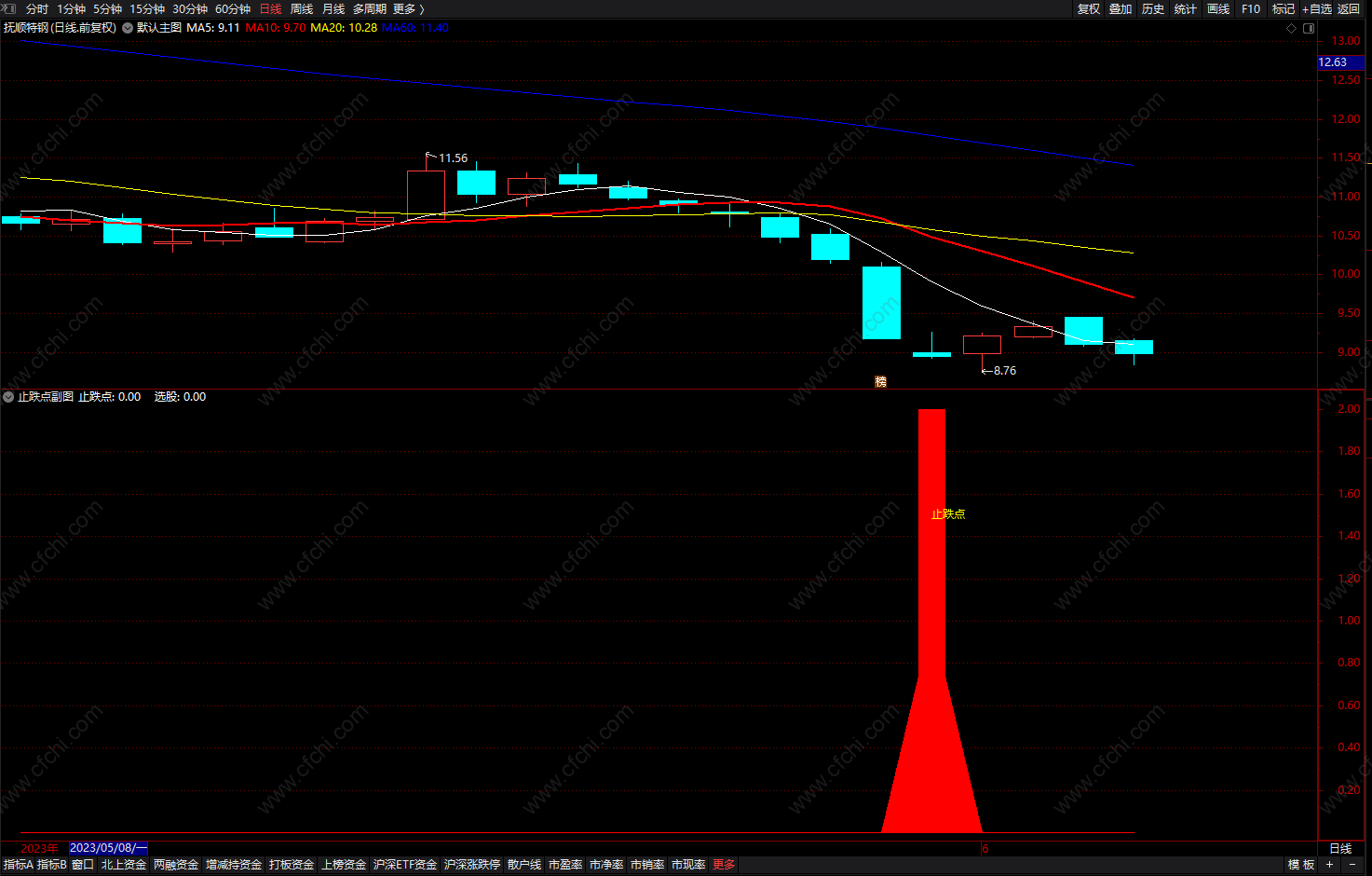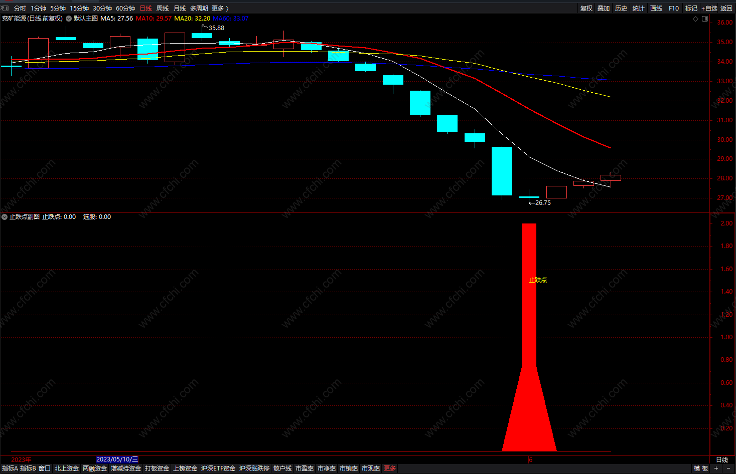 (止跌股票指标 通达信大阴K线后出现的止跌点 选股公式 副图 源码 )