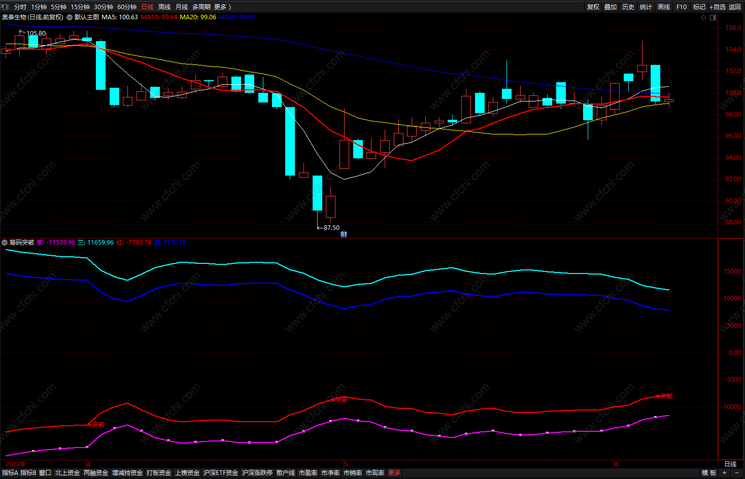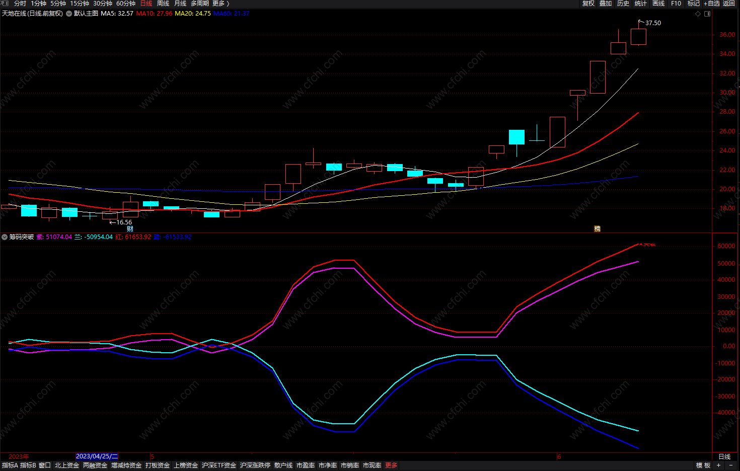 通达信超牛兔步青云主图+副图+选股指标,均线多头排列、抓妖股!源码分享