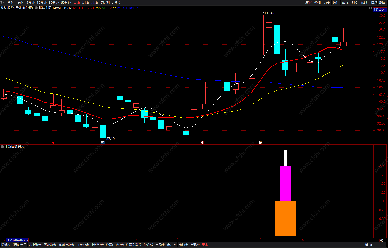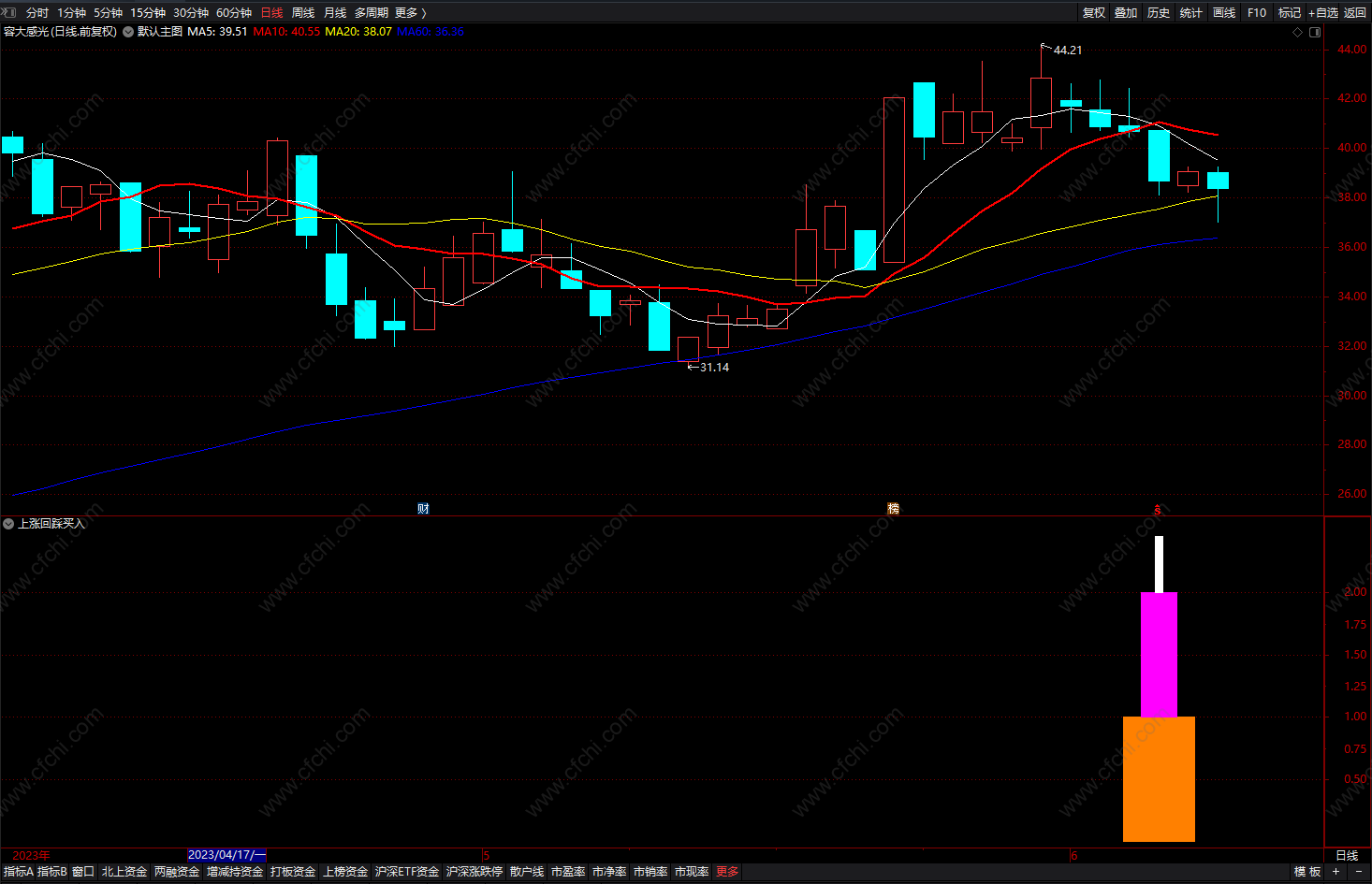通达信回踩选股指标 回踩上涨通道副图指标公式 副图 无未来 源码