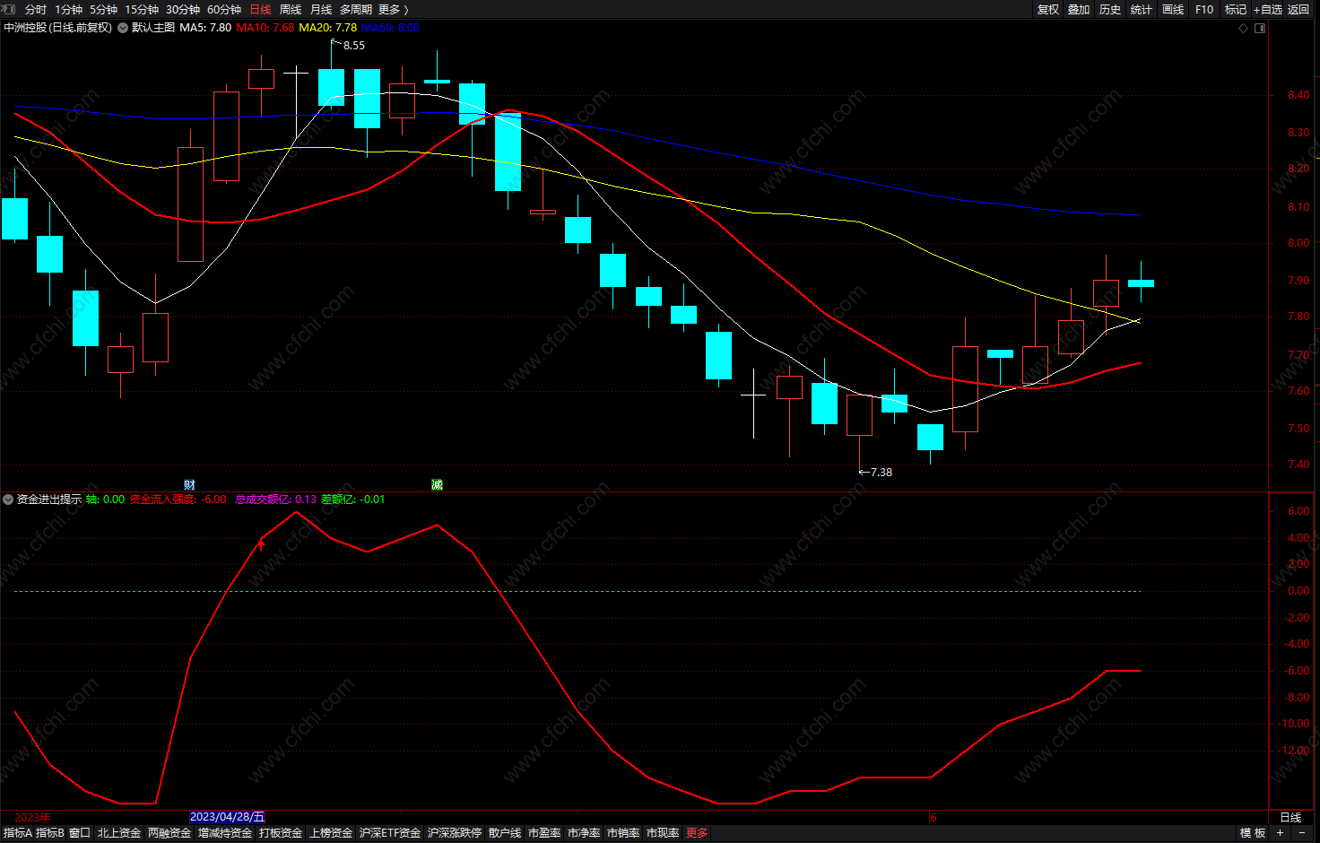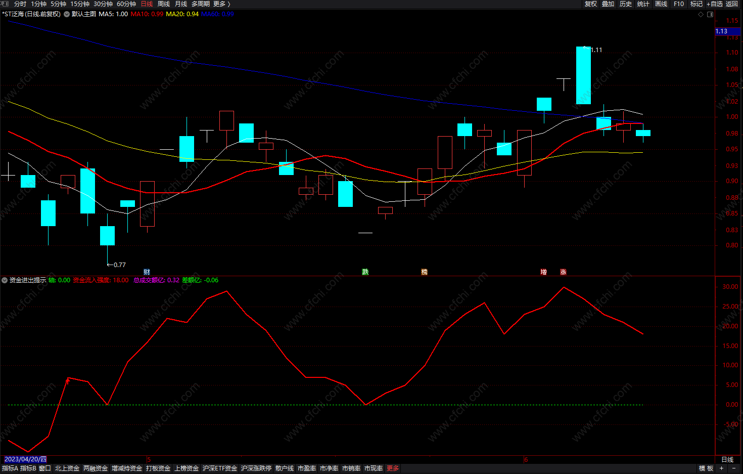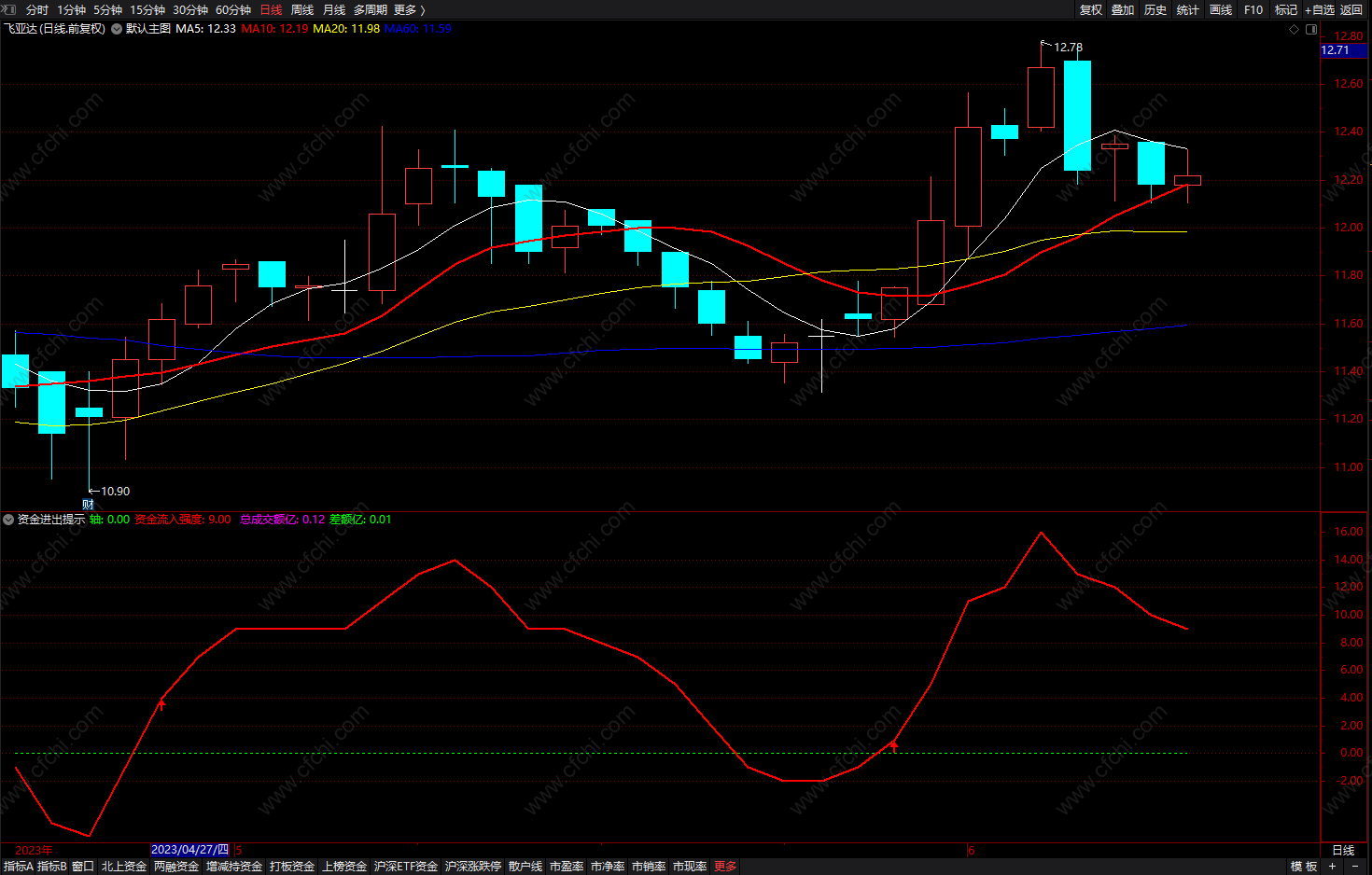(好用资金趋势指标公式 通达信红色箭头提示上涨 副图 源码 )