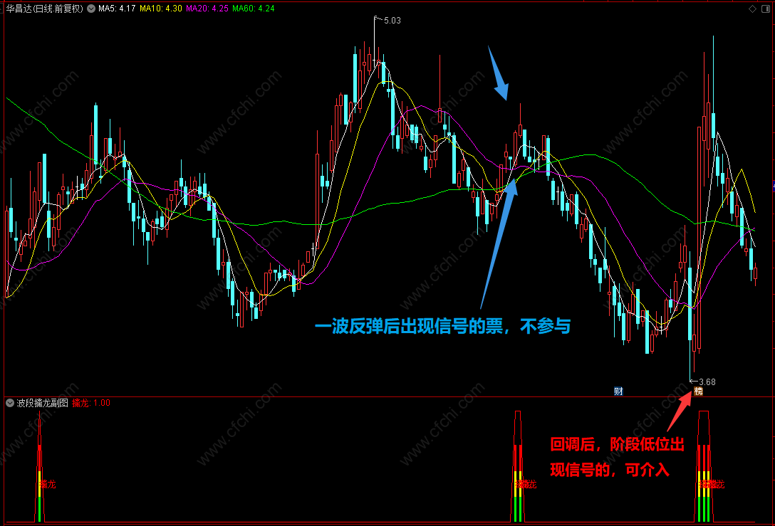 经过一波反弹后出现信号的票,不参与;回调后,阶段低位出现信号的可参与。