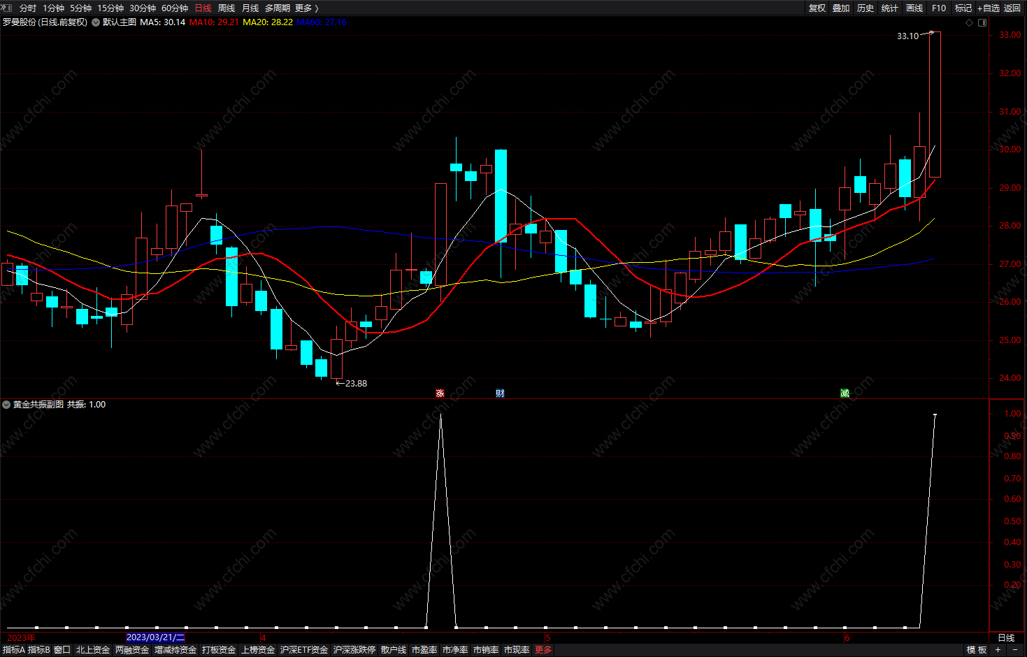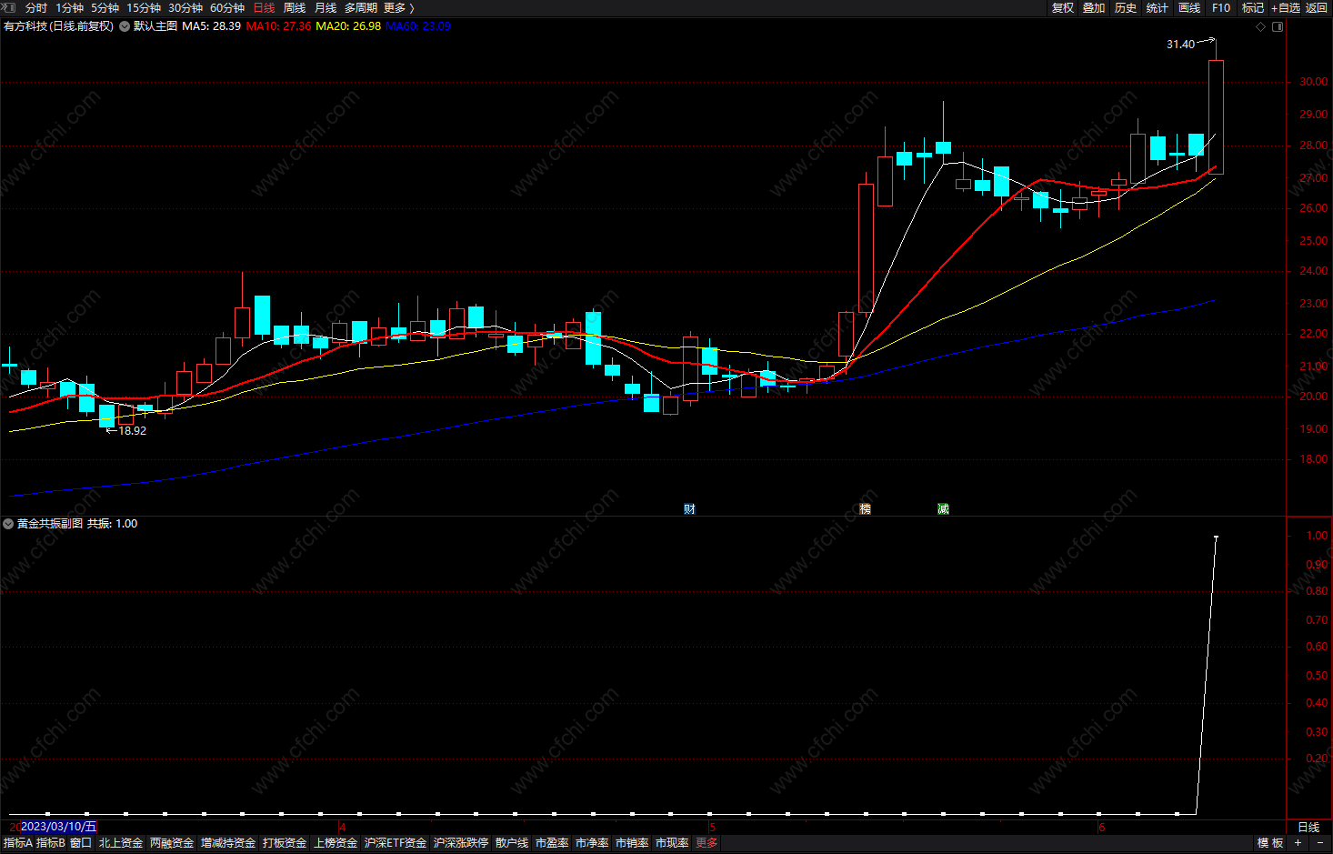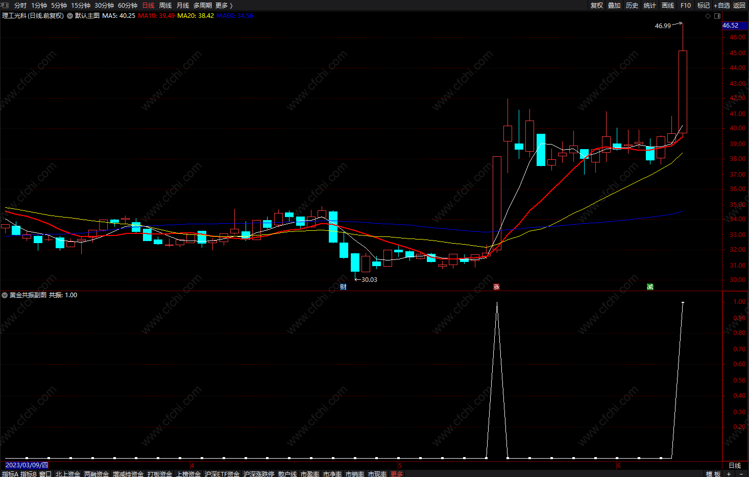 副图出现三角形信号提示上涨!