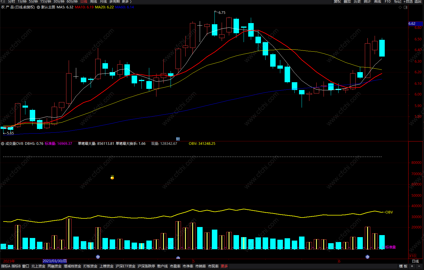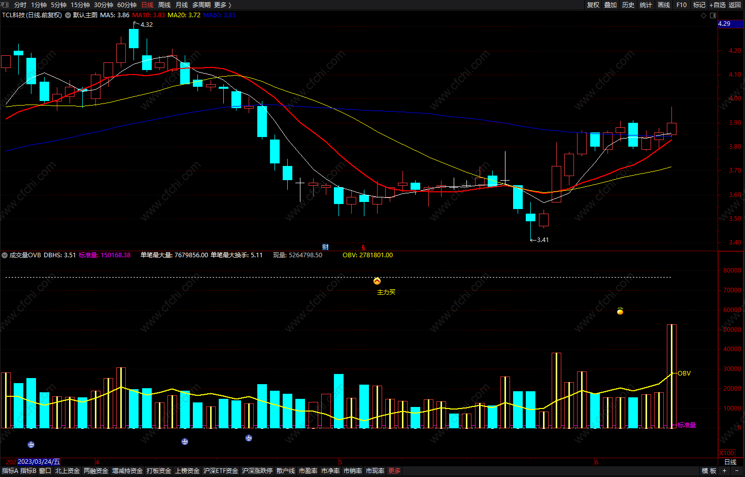 (OBV成交量提示 通达信 成交量上穿OBV成交开始活跃的副图指标公式 源码)