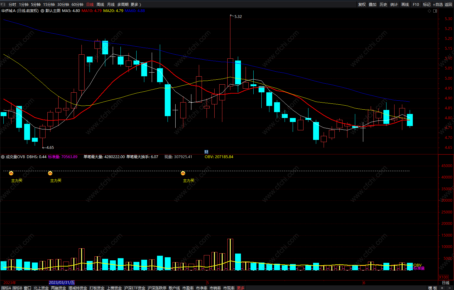 单笔最大换手:HHV(DBHS,240),COLORWHITE,DOTLINE;