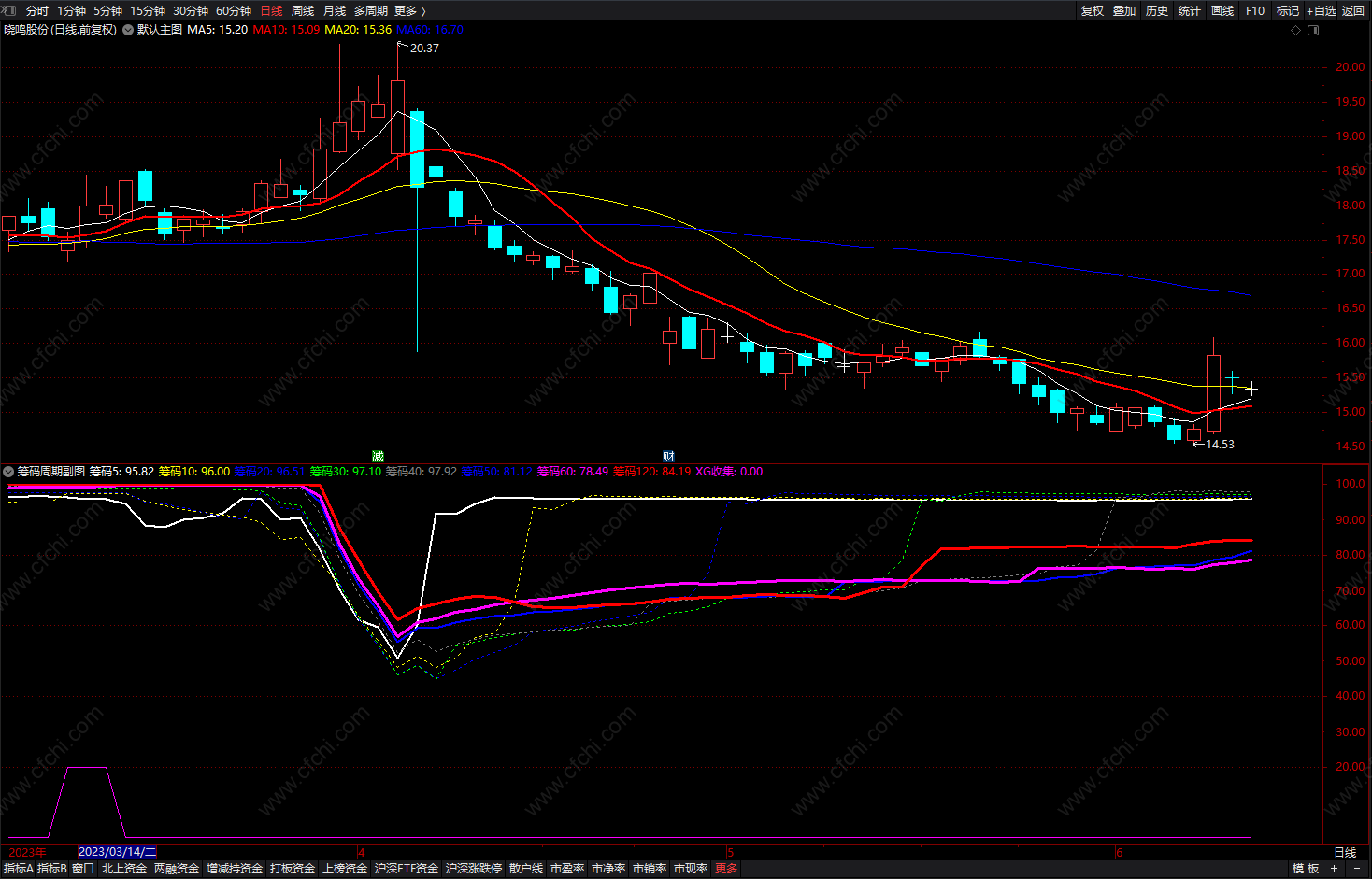 (通达信筹码周期副图指标公式 趋势线买卖点提示指标 源码 )