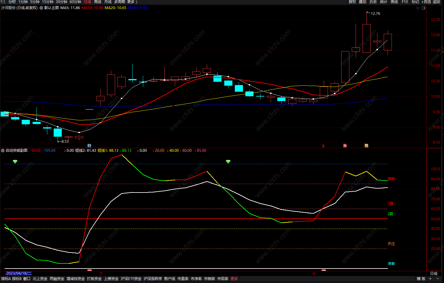 (通达信底部启动突破买指标公式 短线买入必拉升指标 副图 源码 )