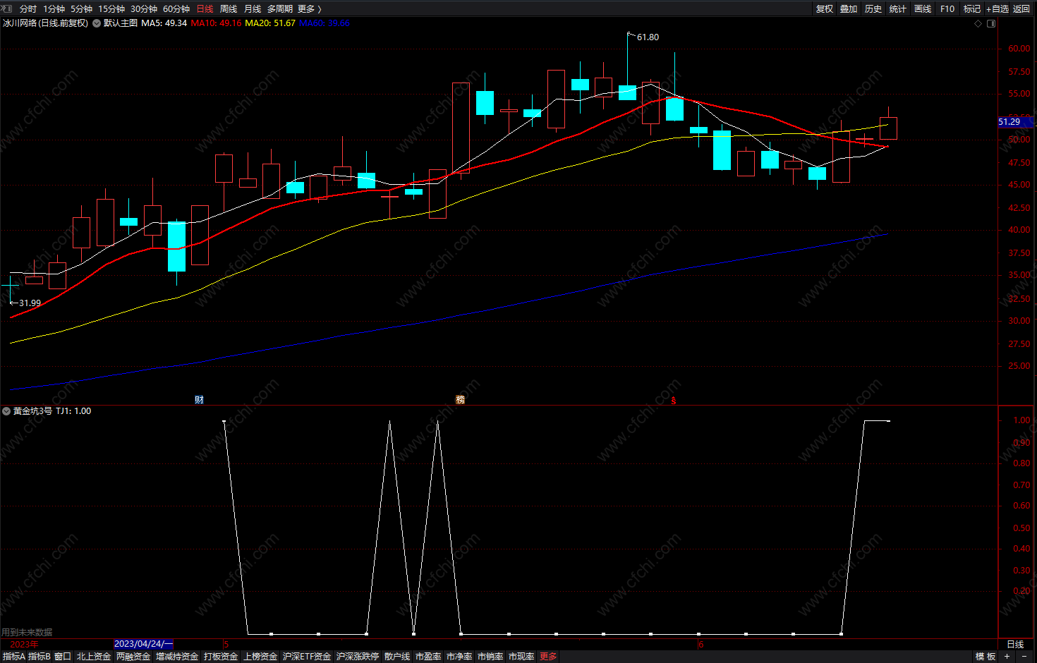 财富池指标公式网(www.cfchi.com)提醒您:指标公式是通过数学逻辑角度编写而来,仅是股票分析环节中的一个辅助工具,对股票选股效率和分析便捷上起到一定的作用,股市是具有不确定性和不可预测性的,请正常对待和使用指标公式!
