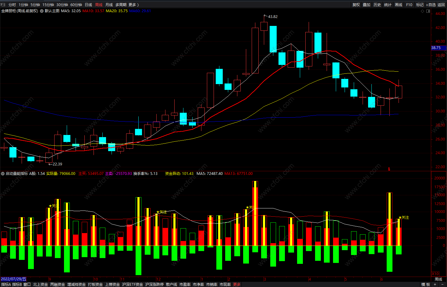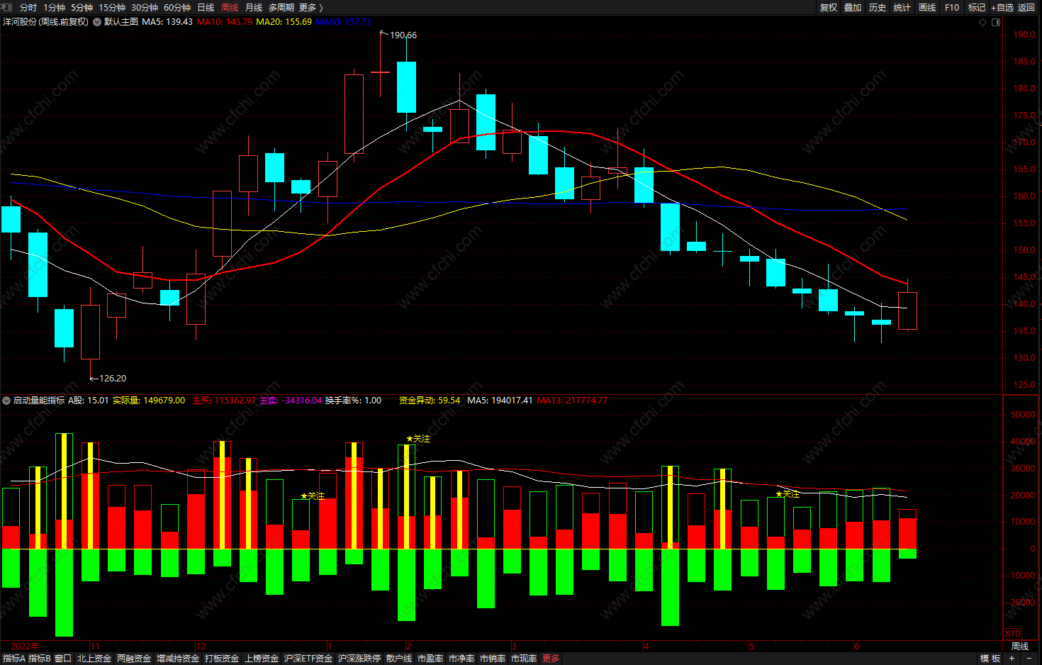 DRAWTEXT(CROSS(MA5,MA13),(V *1.05),'★关注'),COLORYELLOW;