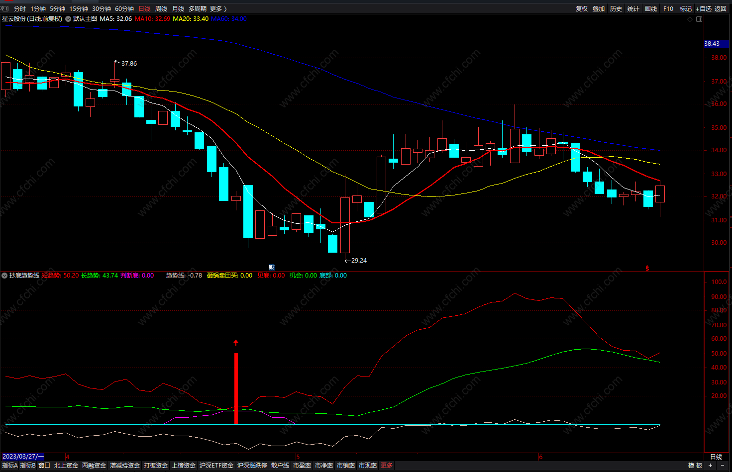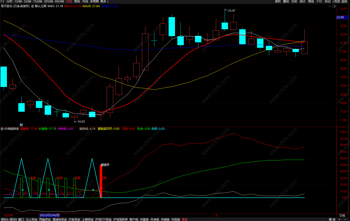 大的方向指标都有提示,比如抄底。我对抄底的理解是,个股跌倒一定程度,跌不下去了,同时盘面上有迹象表明开始反攻时,买入。