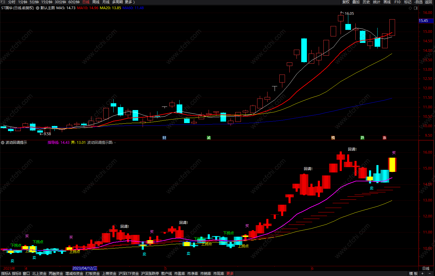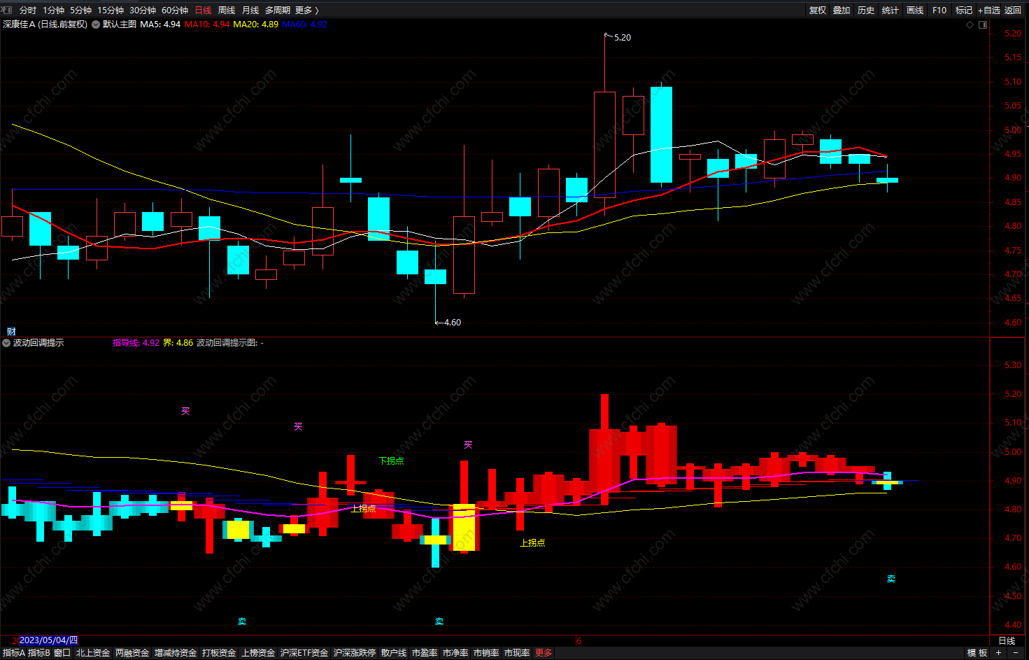 (股票上下拐点公式 极品操盘线波动回调提示 通达信指标 副图 无未来 源码 )