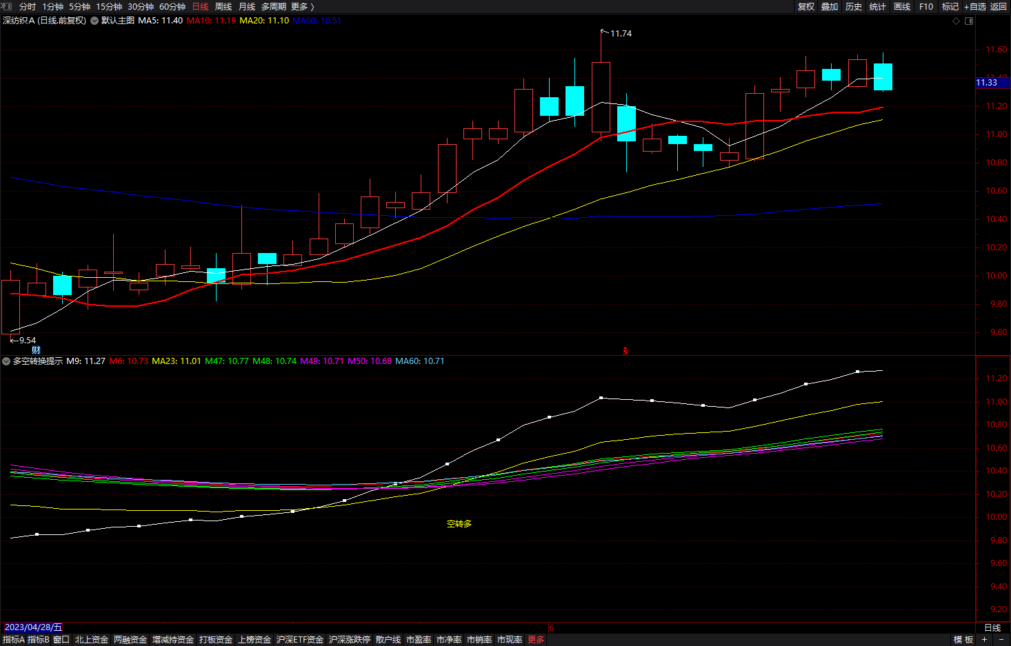 多空转换提示 通达信股市趋势通道指标公式 副图 无未来 源码