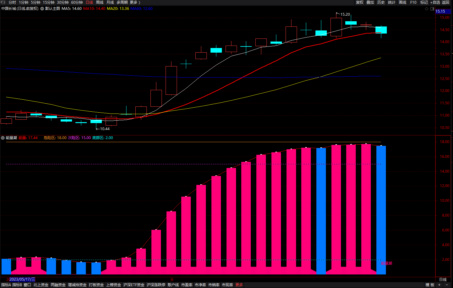能量: SMA(VAR2,5,1)/100,COLORRED;