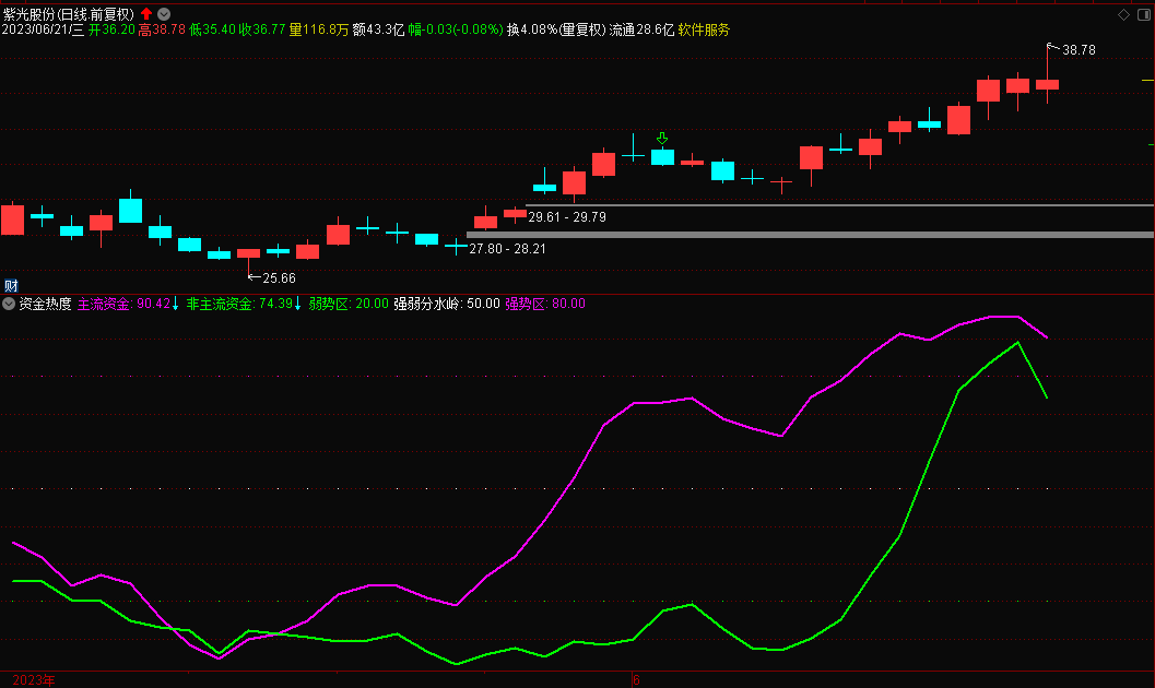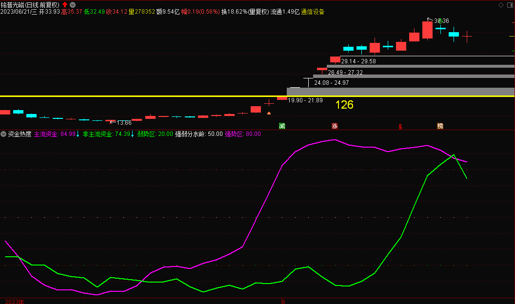 (金典通达信资金热度副图指标 反映资金参与市场买卖的程度)