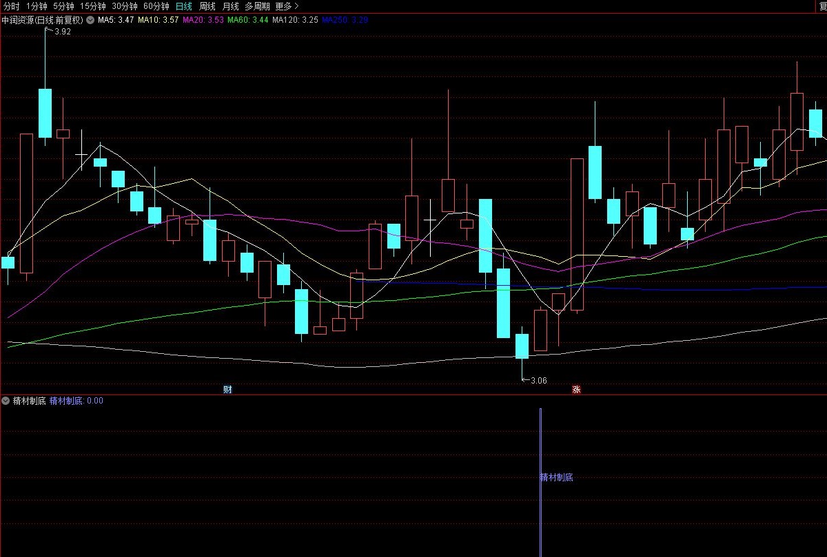买点说明:先说明一下什么是精材制底,就是以信号当日的收盘价在均线120线之上为买入点,买入基本上都是短线股,一般两到十天左右,如果能迎来主升行情,强势股无论怎么回调都不会破这个开盘价,有的甚至连收盘价都不到,直接跳空,连续涨停.同时必须结合题材和龙头思路,牛股更容易擒获!
