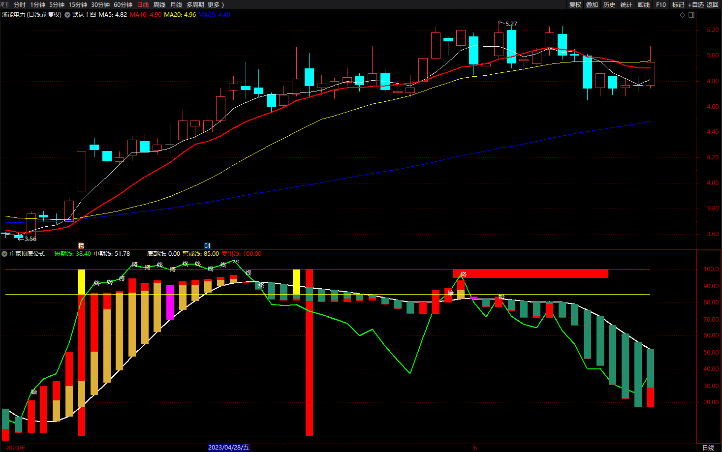 庄家顶底公式 通达信量柱看趋势买卖点副图指标 无未来 源码