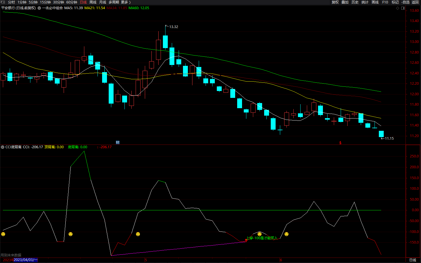 CCI底背离 通达信笑脸介入红色低吸指标公式 副图 源码