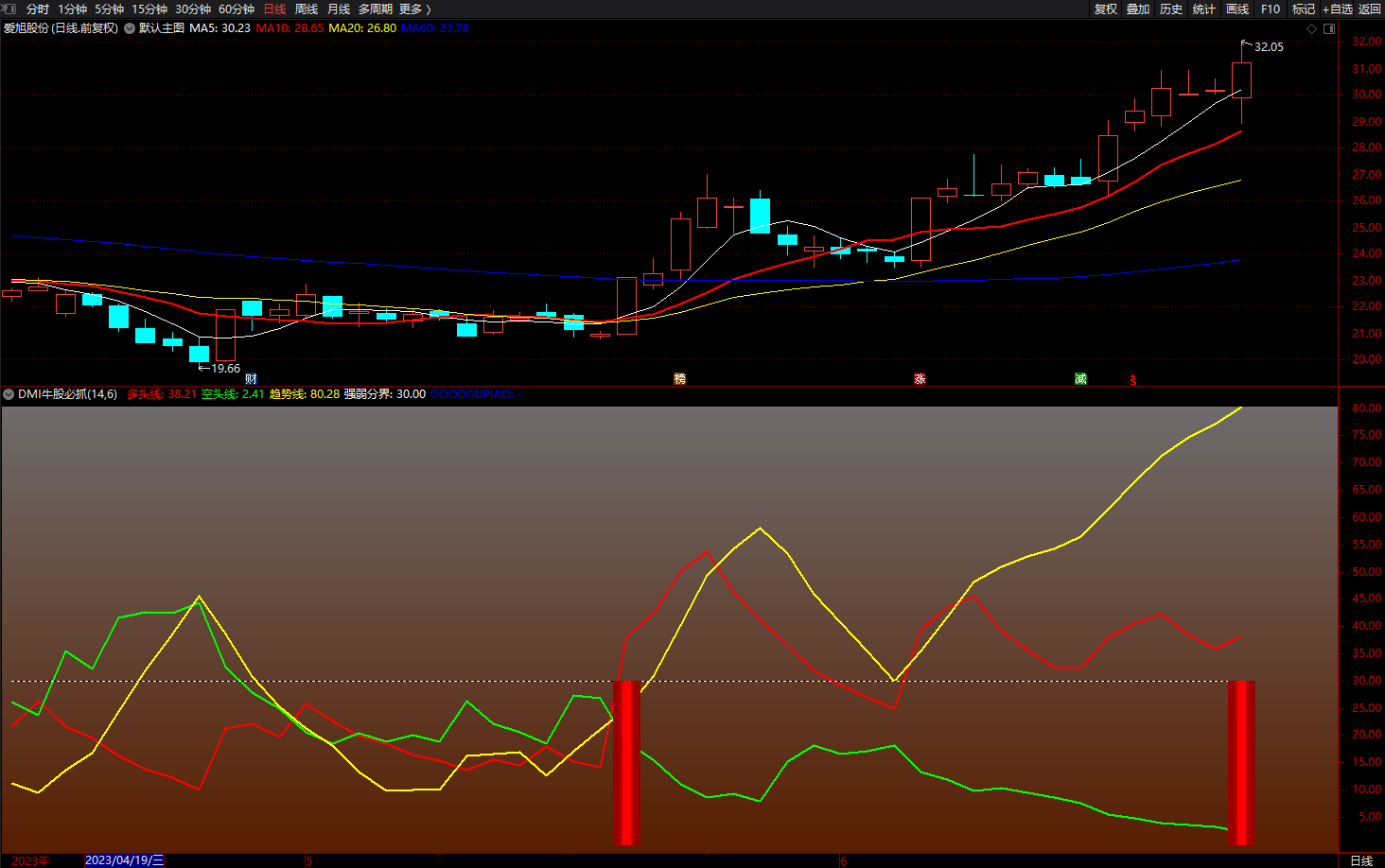 软件自动的系统DMI指标线条太多,非常的驳杂,不够直观简单,我想表达的是,能否有符合抓取这类指标的拐点,或者交叉,这个对于抓涨停非常有意义,又不用去冒太大的风险,抓涨停后的股票的非常是非常高的,第二天出货的概率非常的高。
