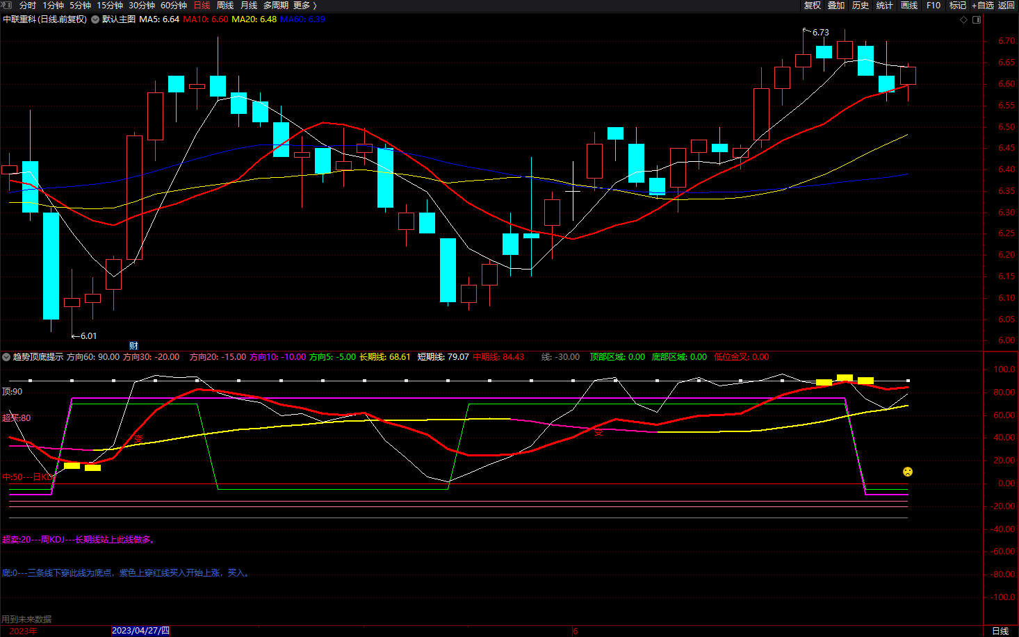 方向60:IF((F5< REF(F5,1)),-25,90),COLORC0C0C0,LINETHICK1;
