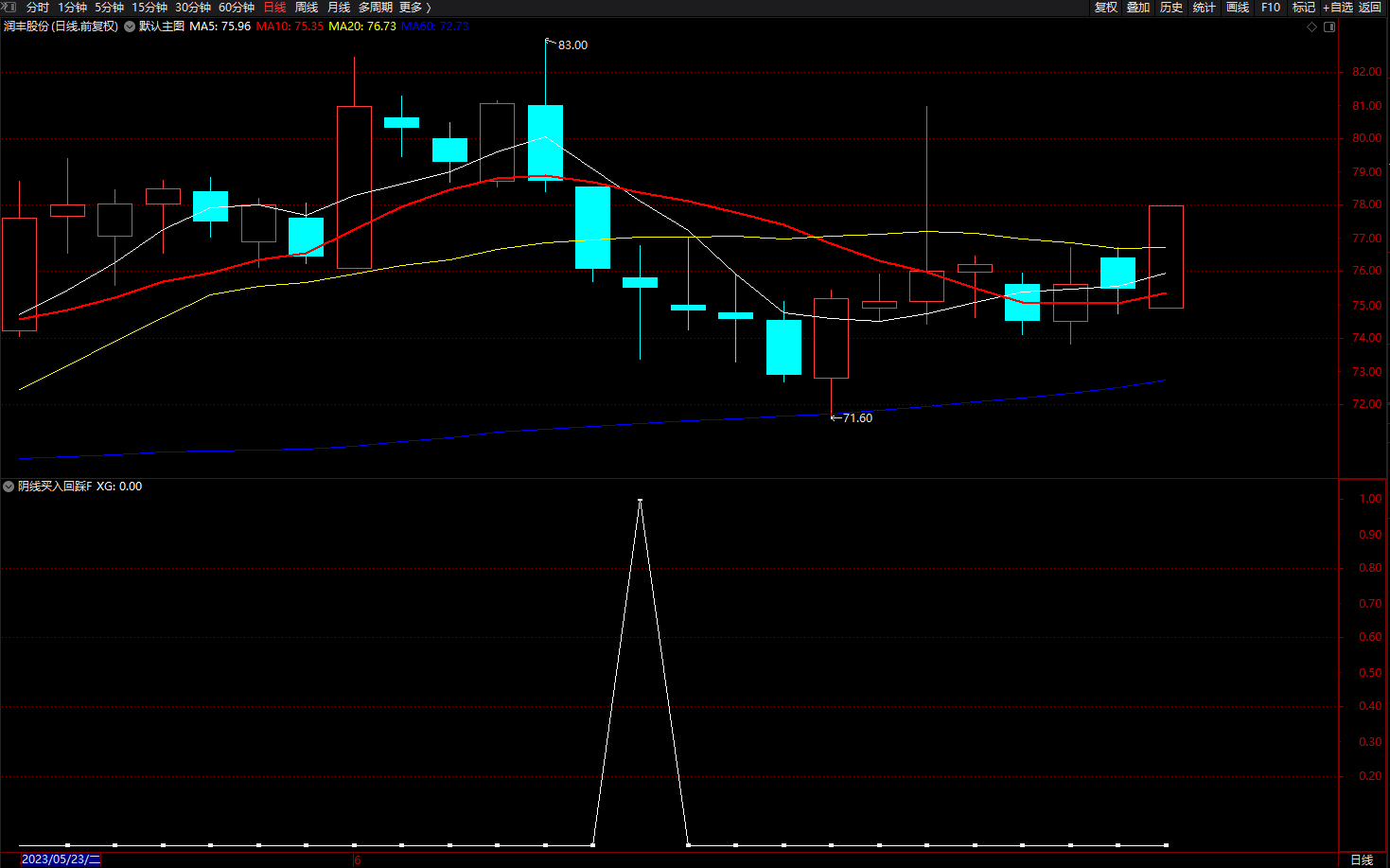 (回踩阴线全仓买选股预警公式 通达信自用上涨趋势 副图 源码 )