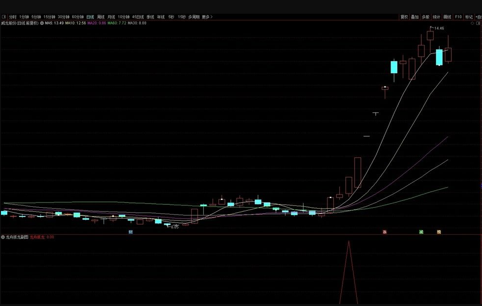 【新版双紫擒龙】副图选股指标强势起爆+双紫擒龙+动能二号+共振追涨 独创三紫一红选股