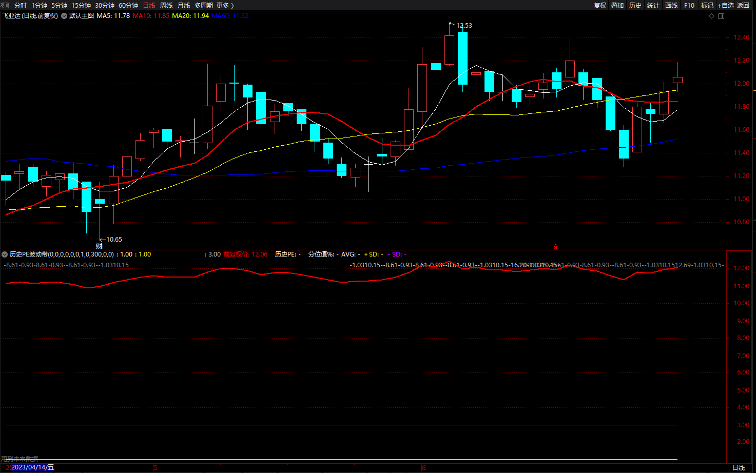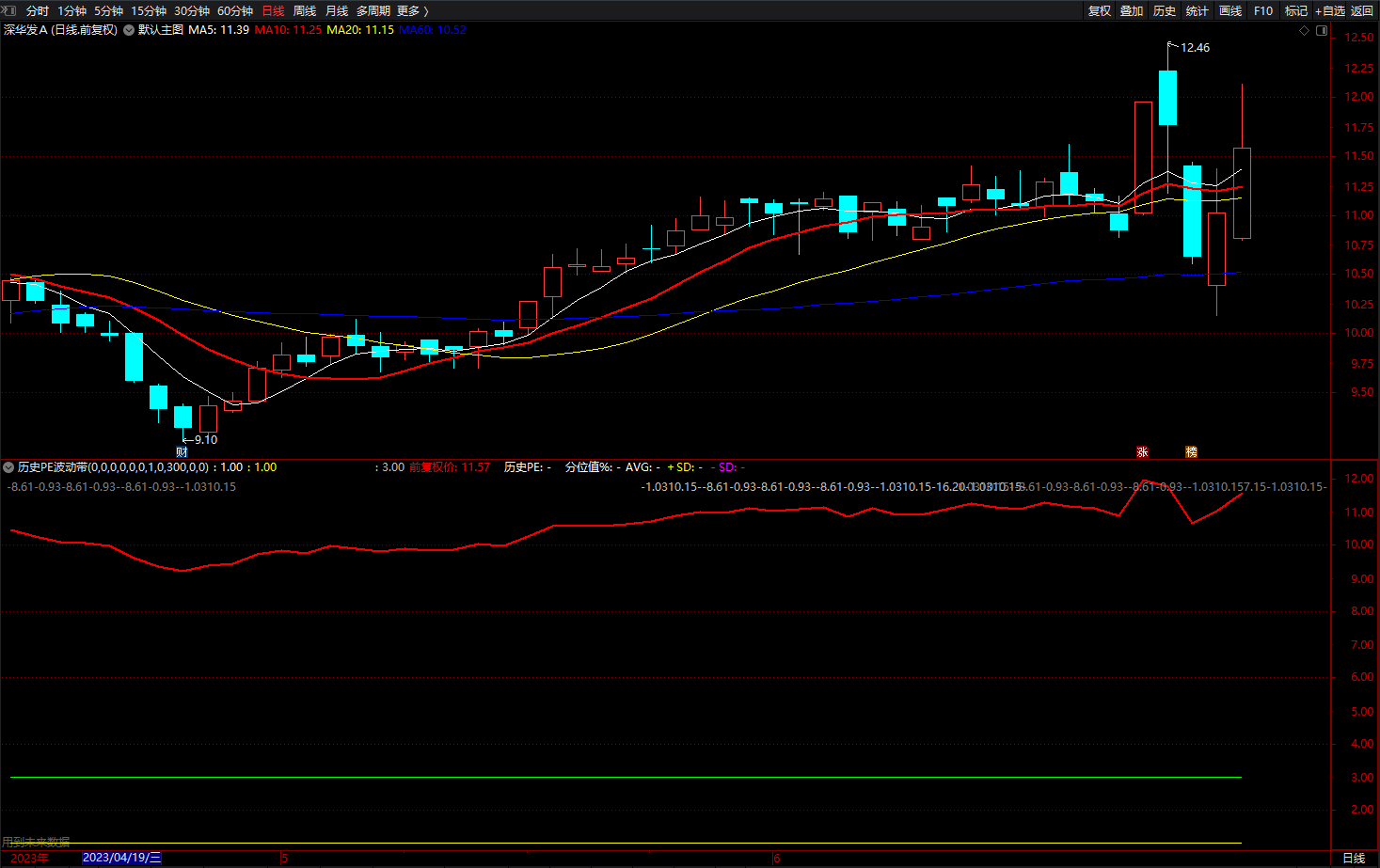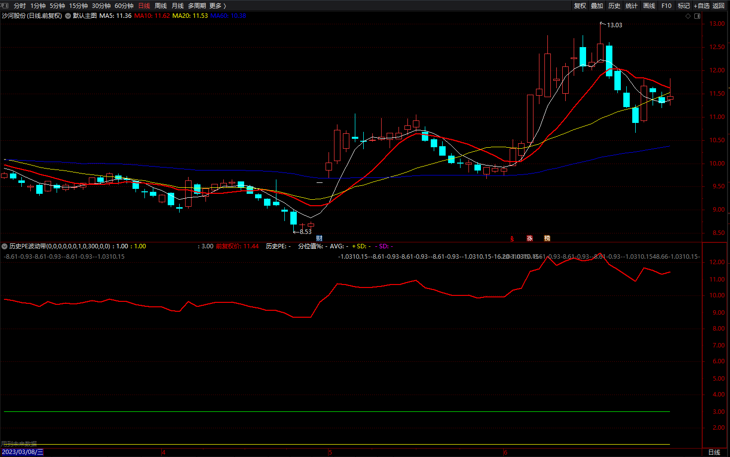 通达信价值判断历史PE的估值提示 优化波动带副图 源码