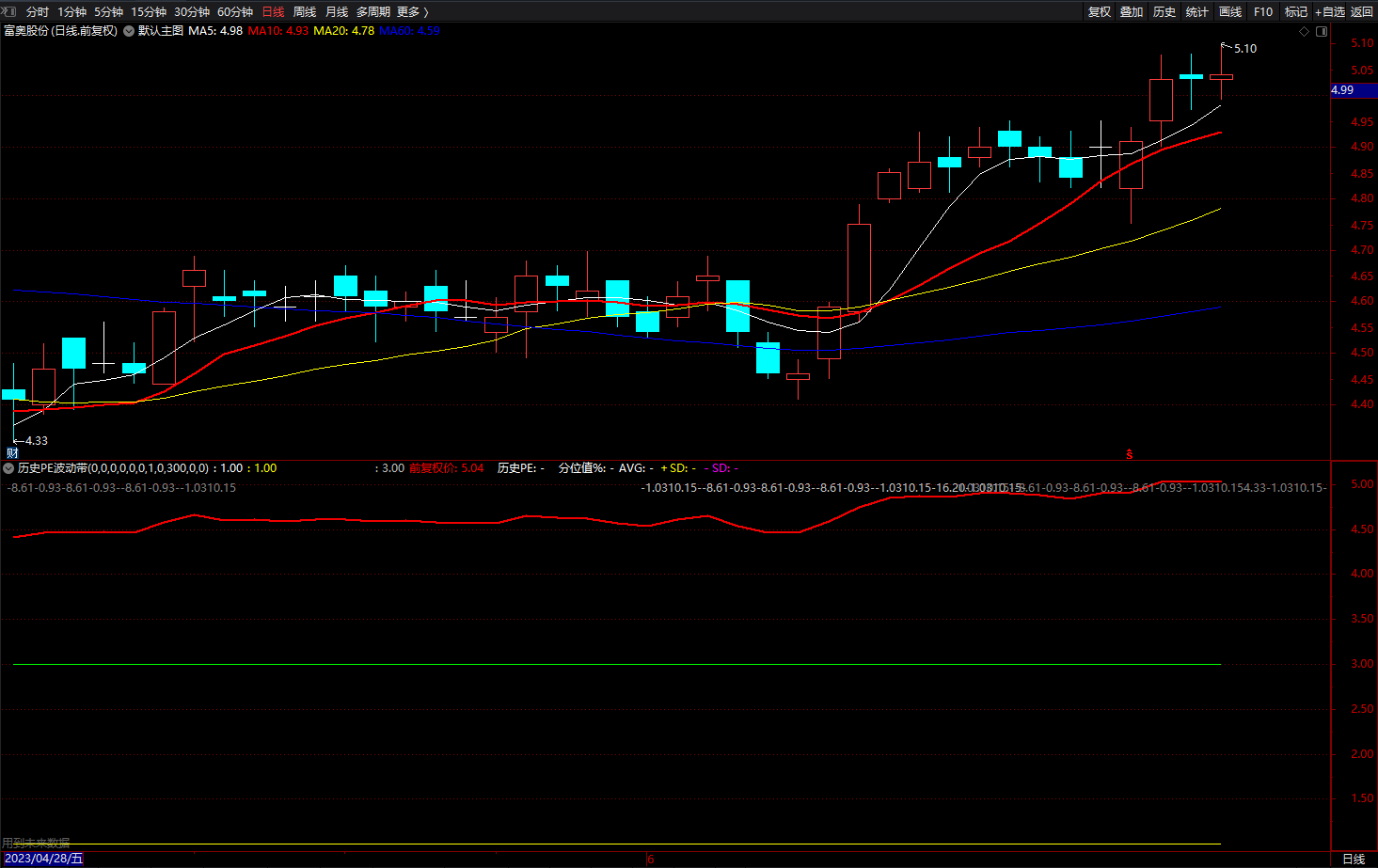 (通达信价值判断历史PE的估值提示 优化波动带副图 源码 )