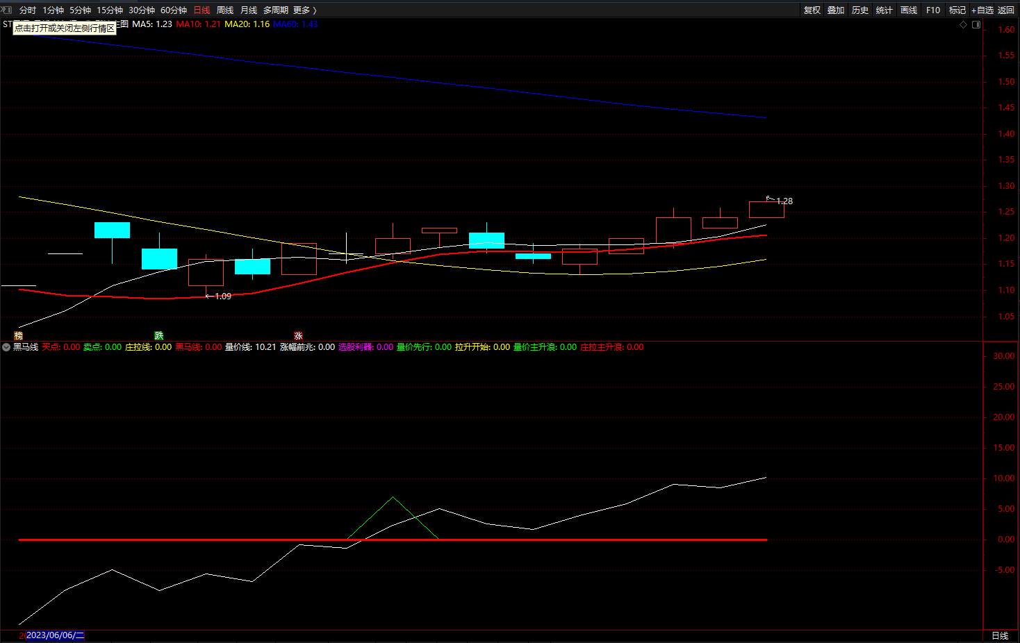 黑马线:IF((VAR28 > 0.1),VAR29,0) * 5,COLOR0000FF;
