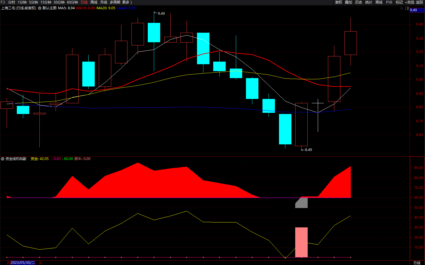 牛股起涨点买入法 通达信 机构资金线副图指标 无未来 源码
