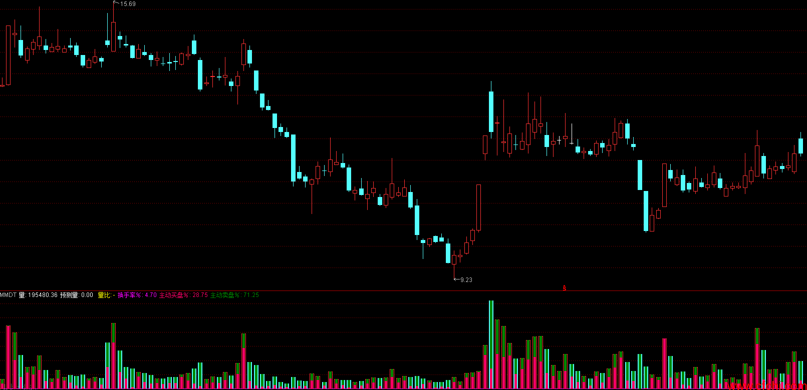 主动卖盘%:ABS(主动卖盘/VOL*100),COLOR008800,NODRAW;