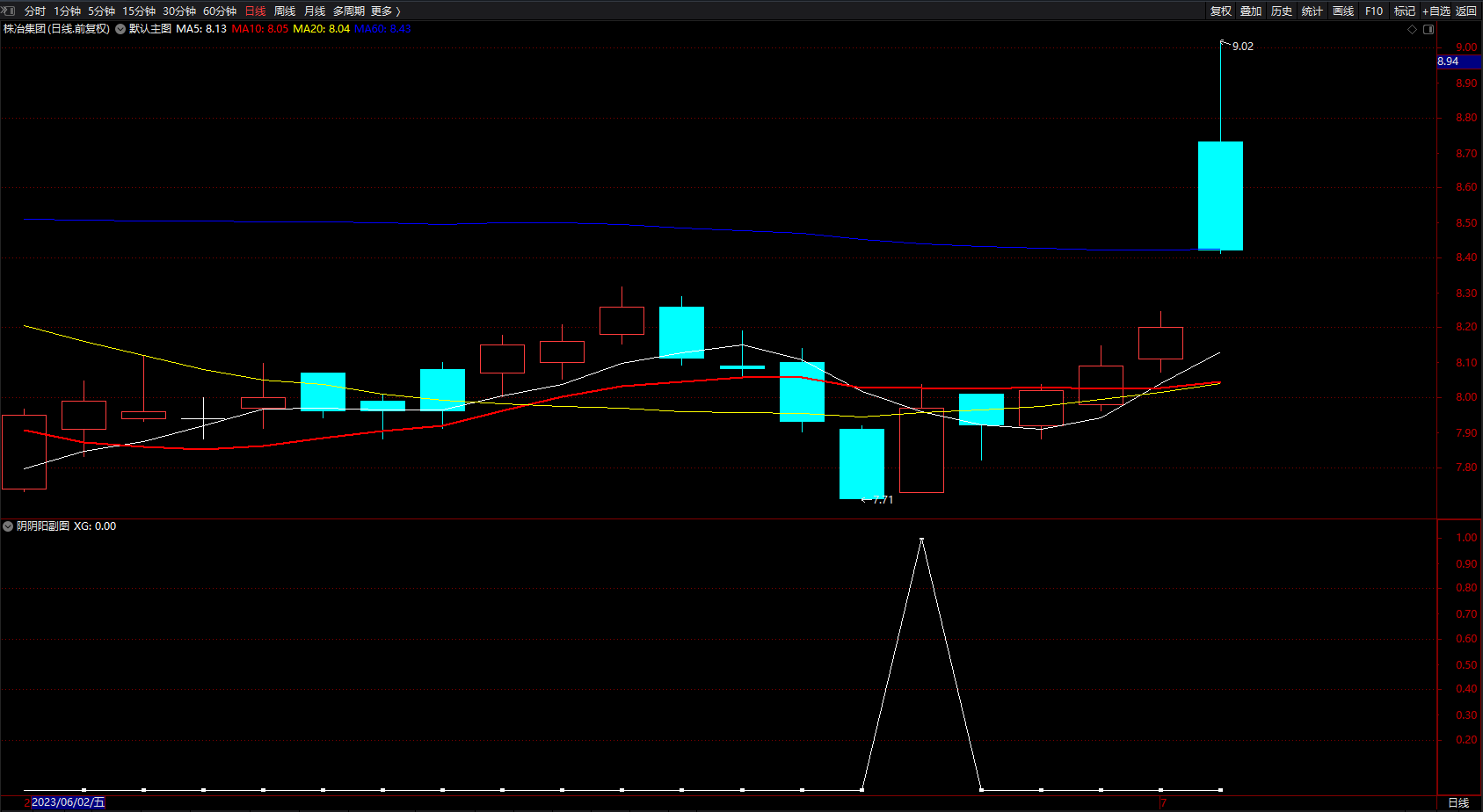 通达信〖AI量化分时〗主副图分时指标,捕捉股票在分时图上的强势启动信号,源码