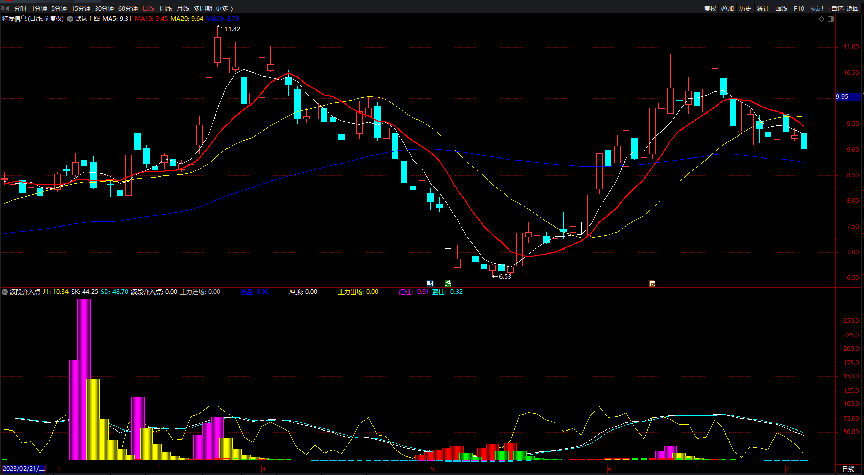 通达信〖AI量化分时〗主副图分时指标,捕捉股票在分时图上的强势启动信号,源码
