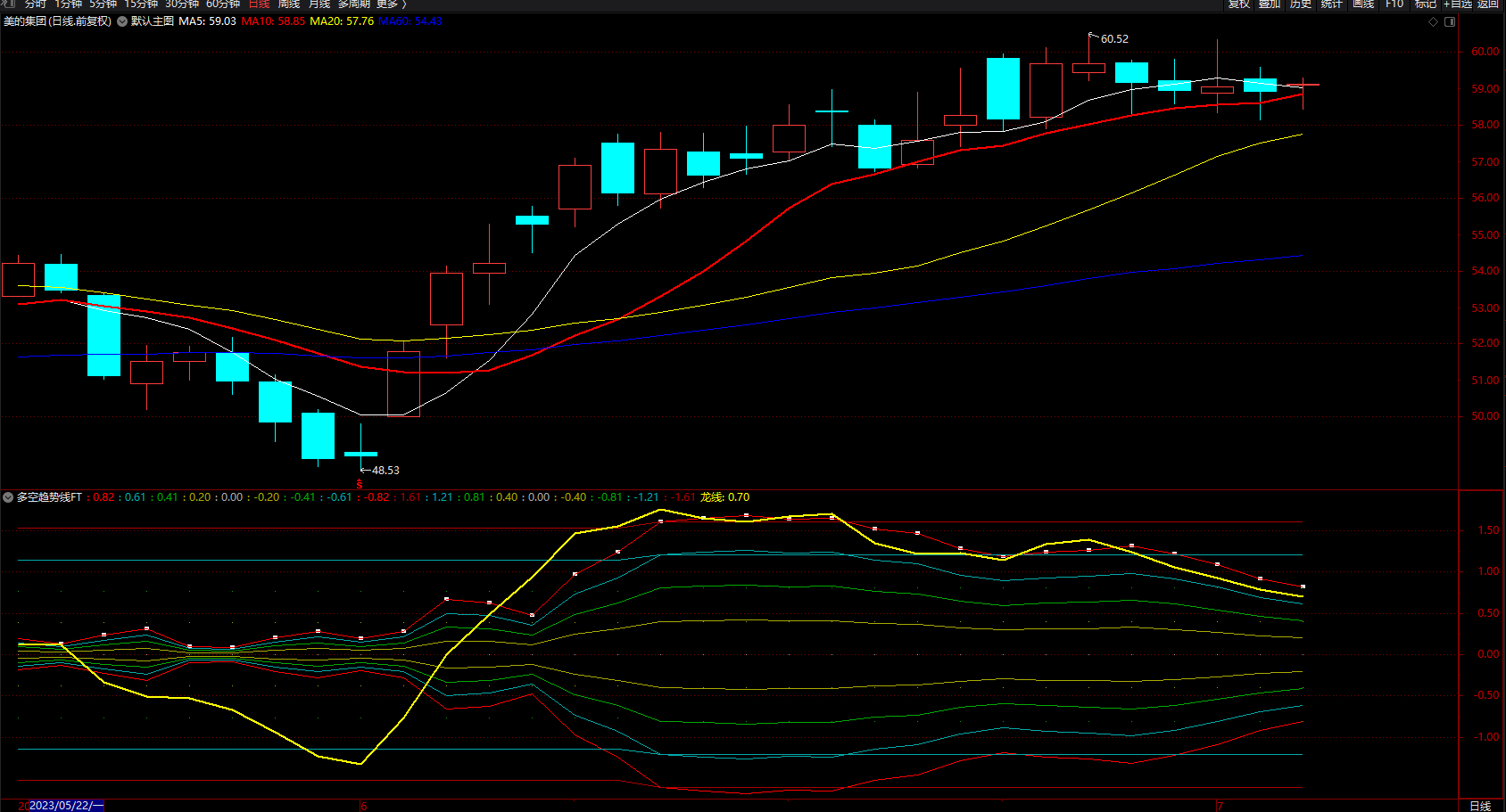 股票多空趋势线指标公式 找介入点 判断洗盘和出货 副图 无未来 源码
