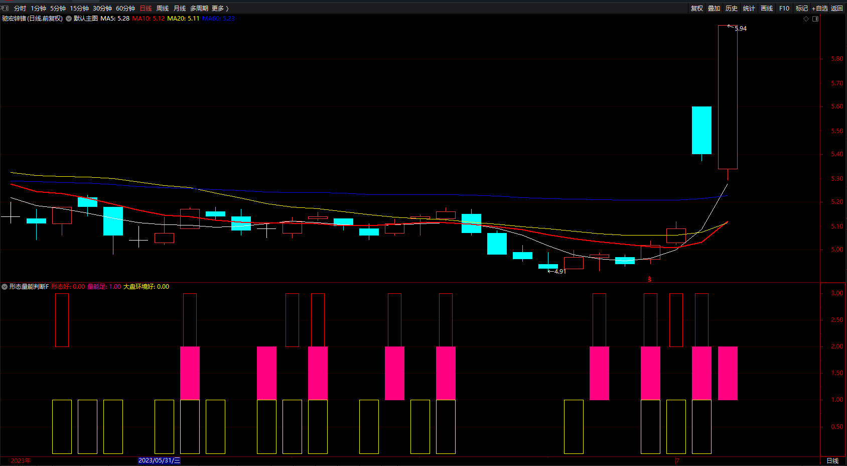通达信大盘形态量能判断指标 高量柱买卖副图指标无未来 源码