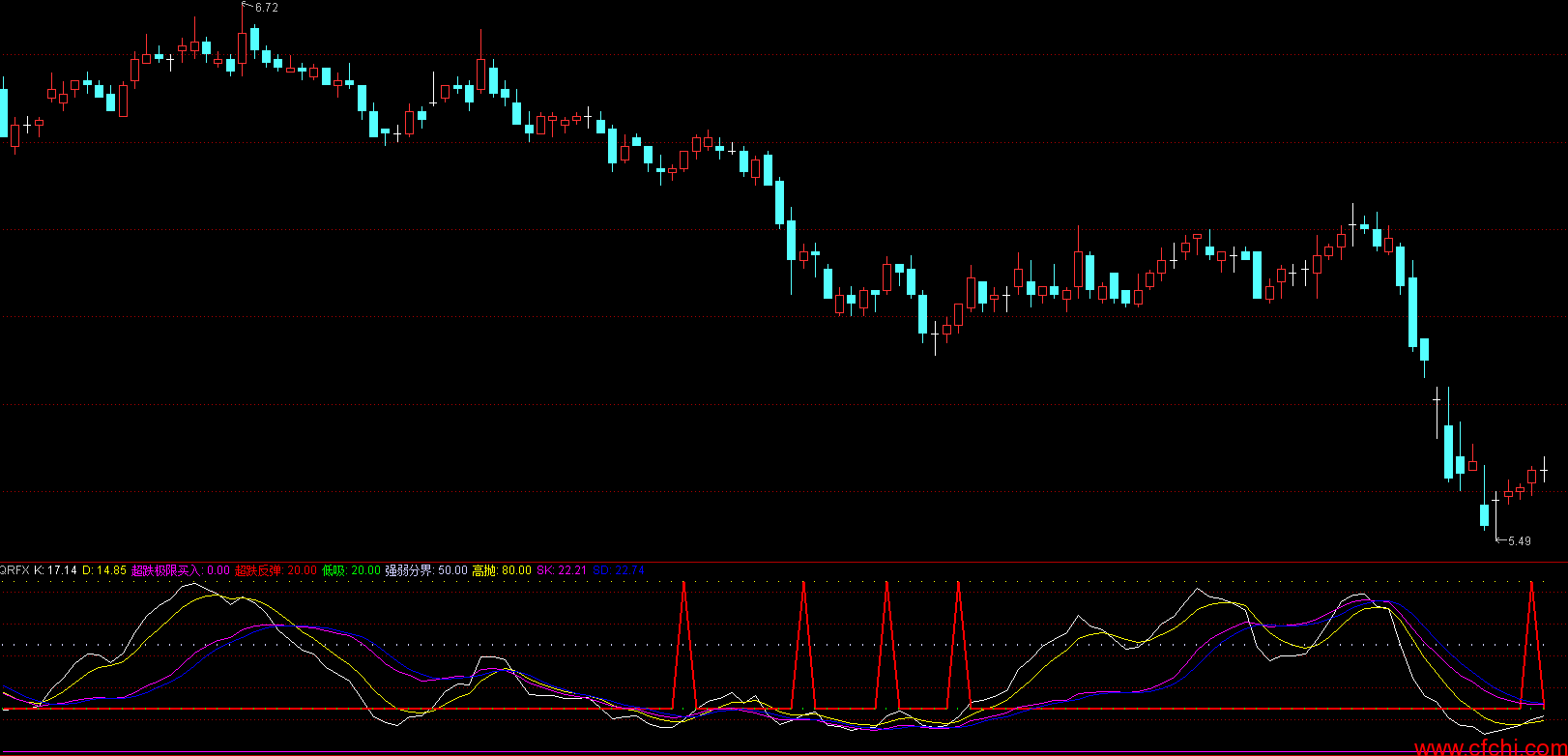 超跌反弹:IF(CROSS(K,D) AND K<=20,80,20),COLORRED,LINETHICK2;