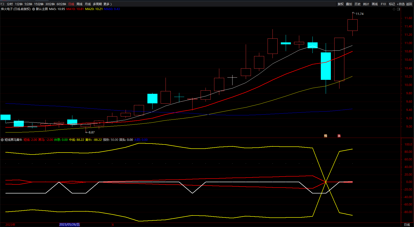 (黄牛线和黑马线提示买卖点 通达信短中线炒股好用的指标公式 副图 源码 )
